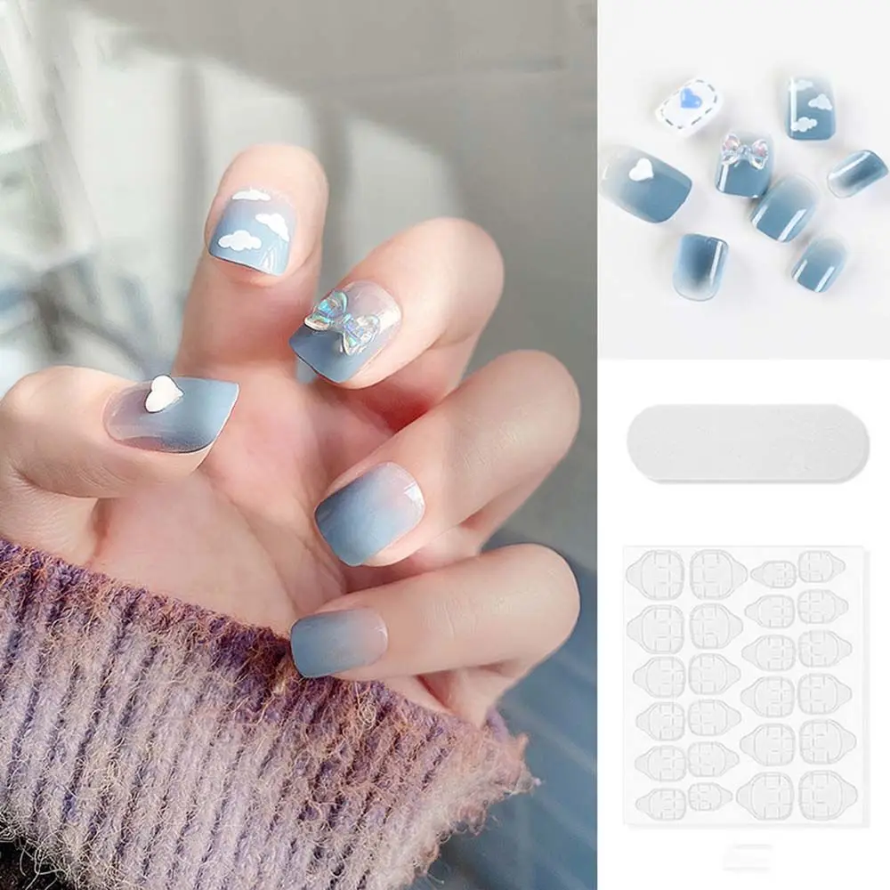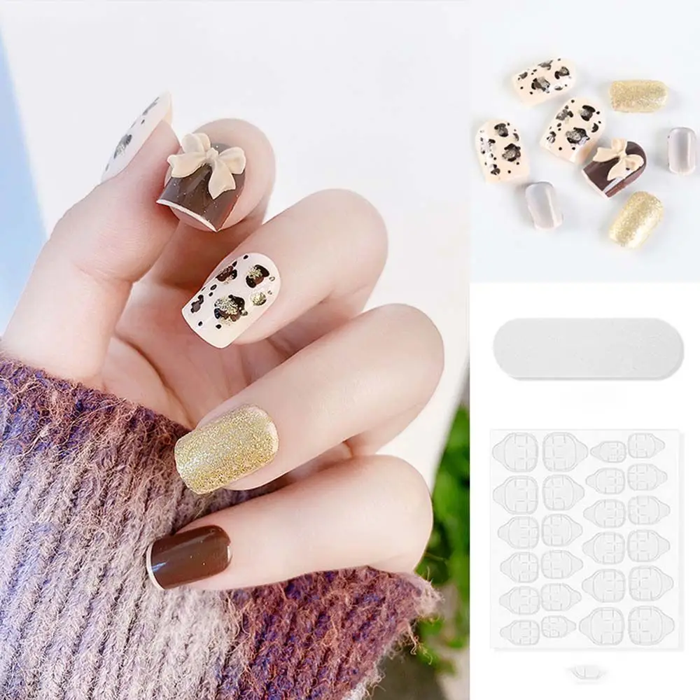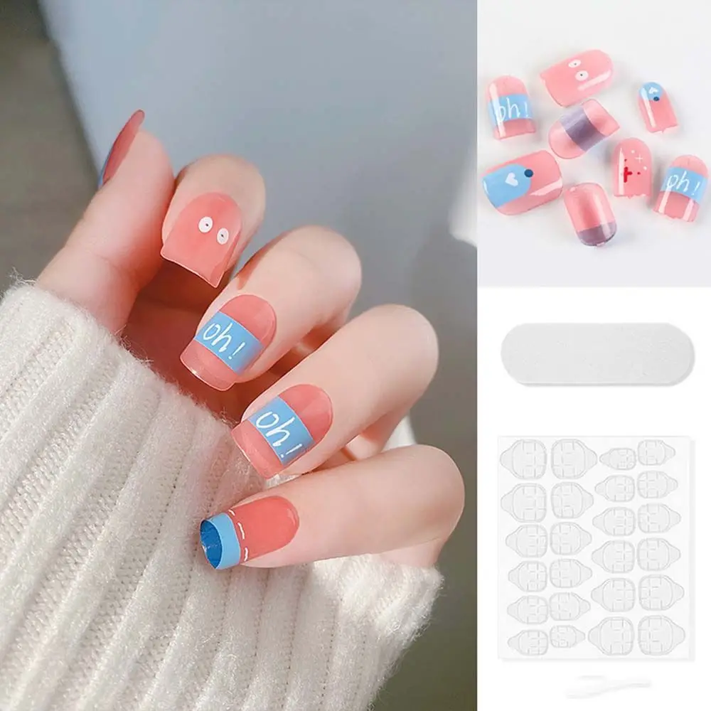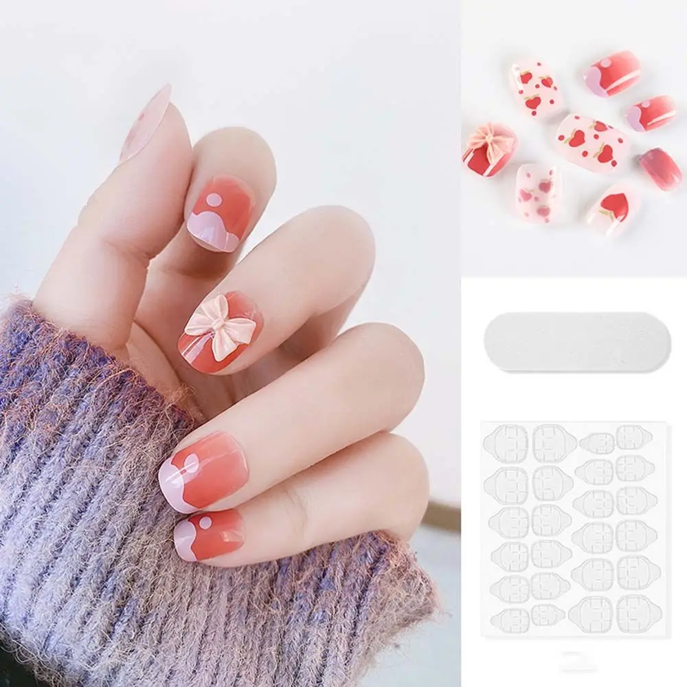 on False with Designs Set Bowknot Cartoon Animal Decal Fake Nails Art Heart Point Full Cover Artificial Short Nail Tips