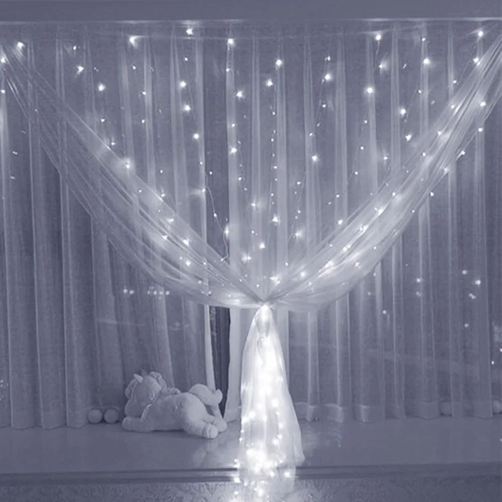 • Rain Curtain LED Waterfall String Lights 8 Lighting Modes Garden Fairy Wedding Party Balcony Gypsophila Lamp Decoration