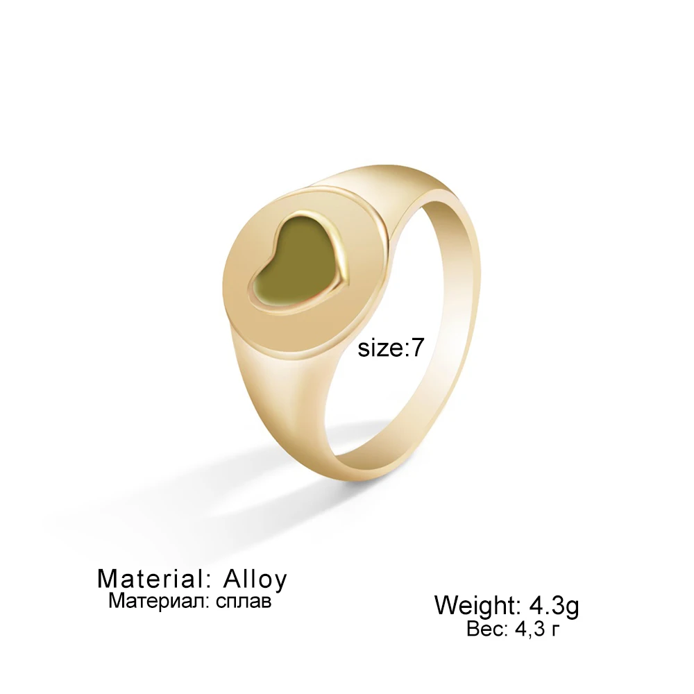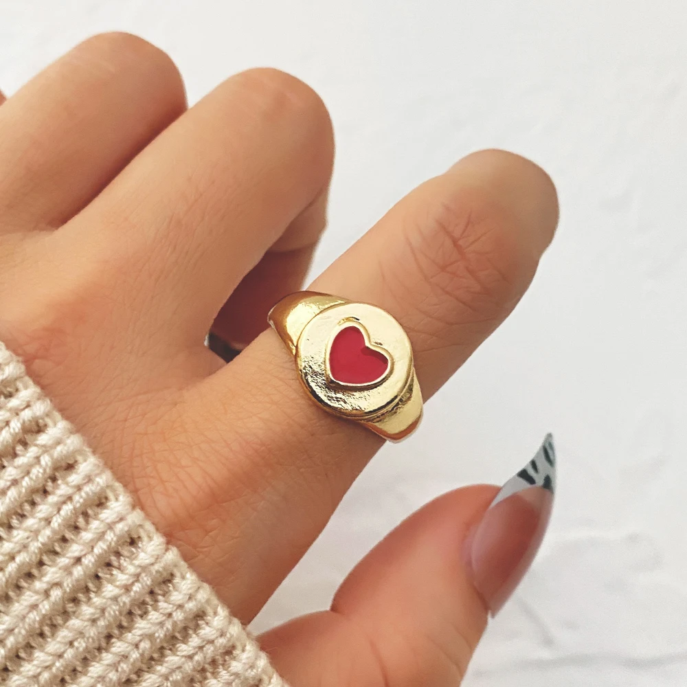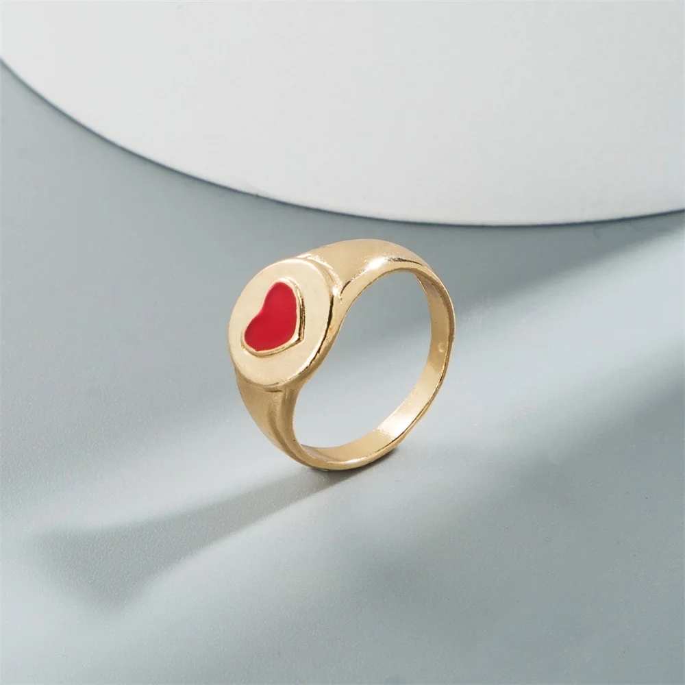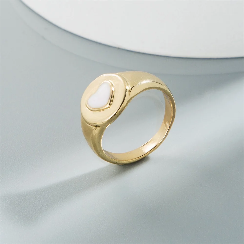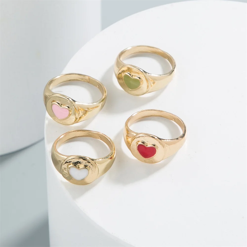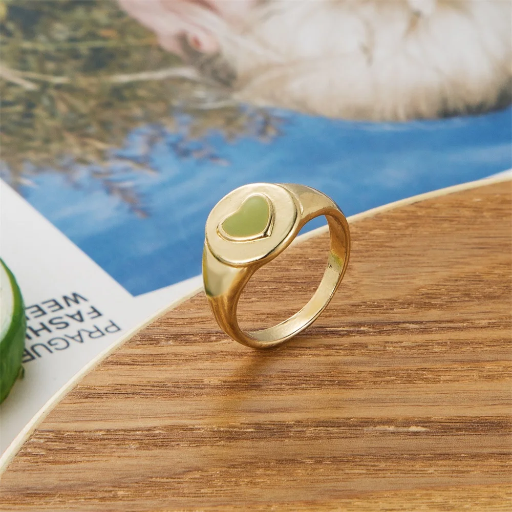 Golden Metal Colorful Heart Ring for Women Fashion INS Love Heart Resin Geometric Joint Ring Trend Jewelry Wholesale