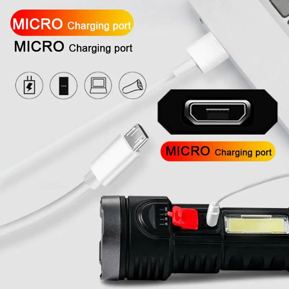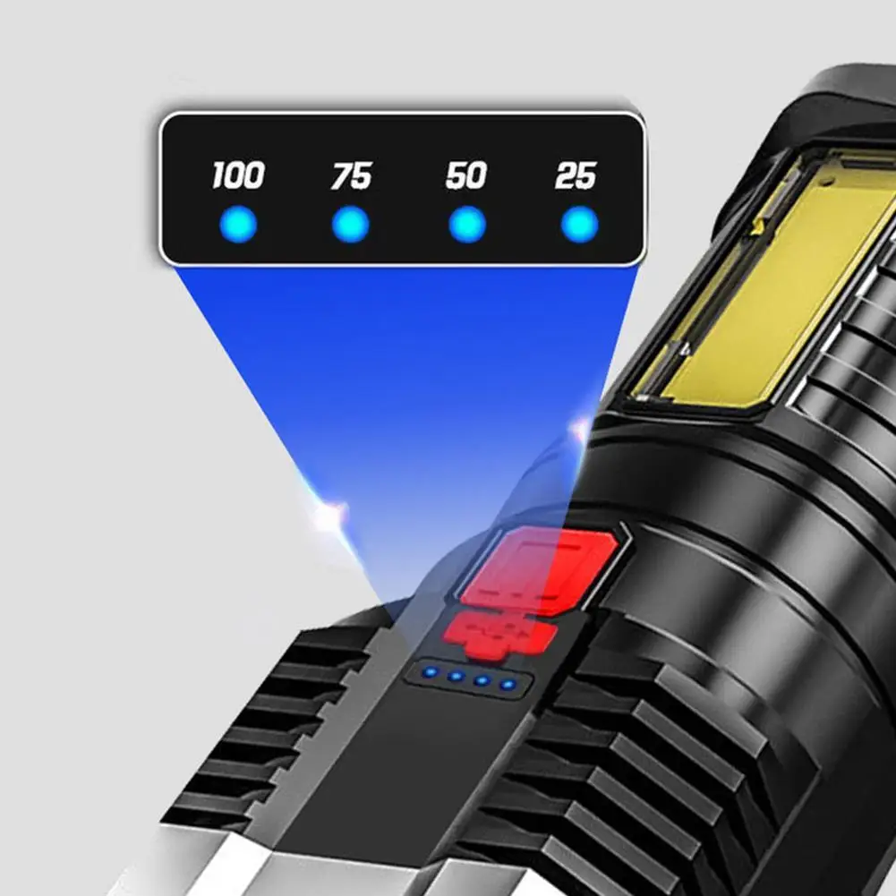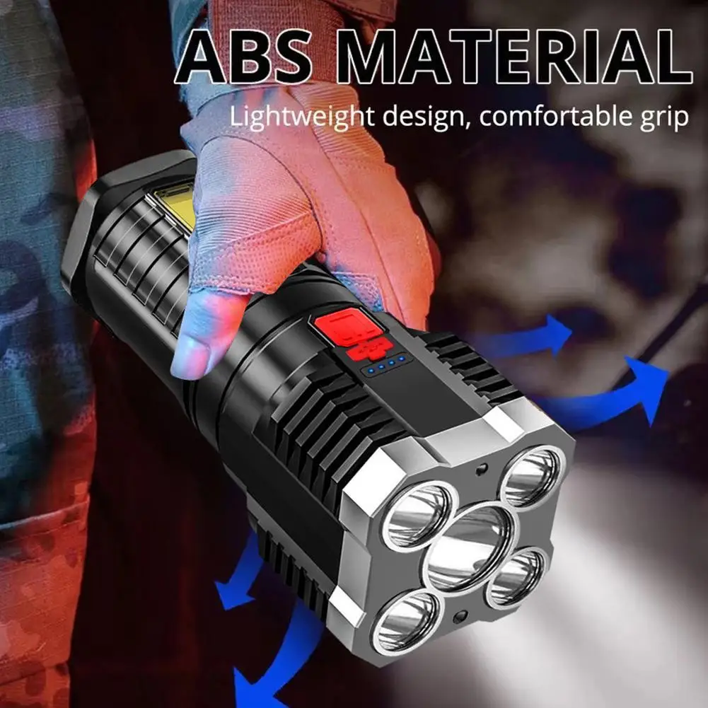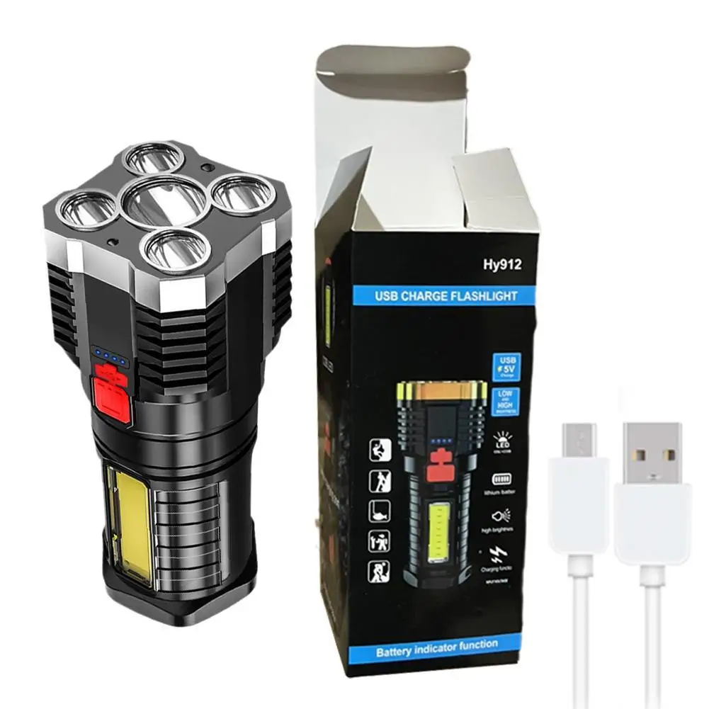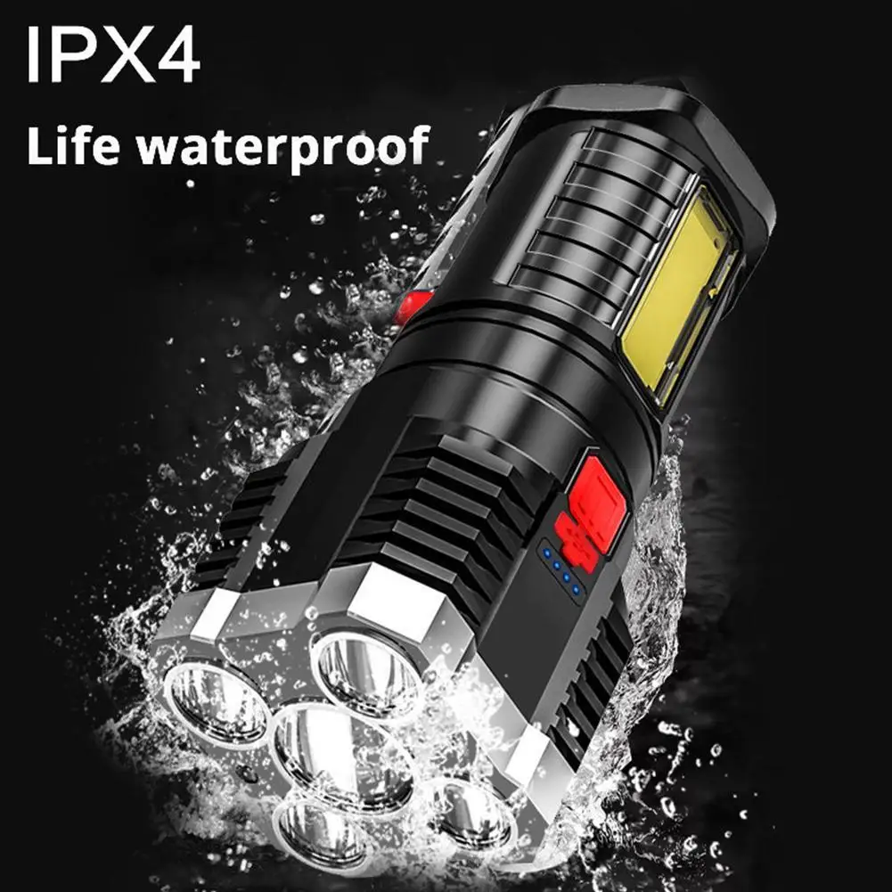 Rechargeable 5-core Super Bright Flashlight Outdoor Multi-function P1000 Led Long-range Flashlight Battery Display COB Light