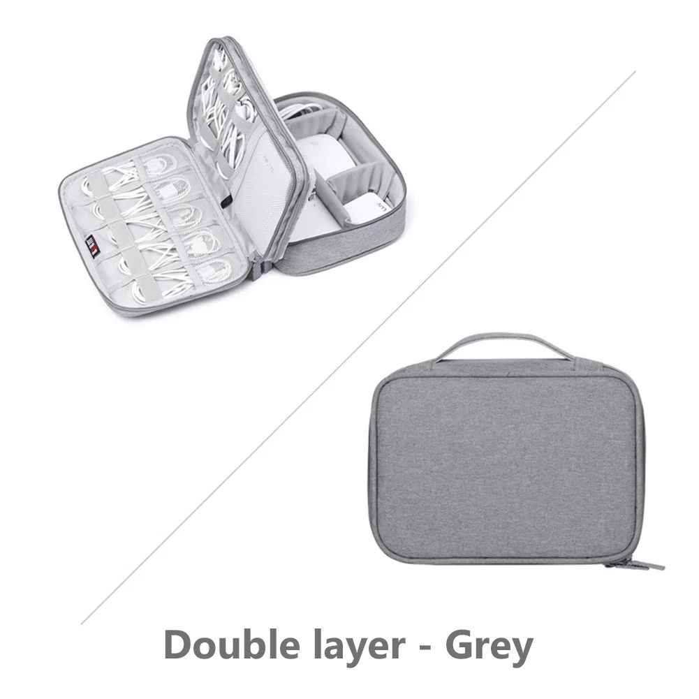 Waterproof & shock resistant. Our electronics accessories USB cable bag is made of waterproof polyester fabric and nylon, thick padded inner material offer excellent protection for your electronic accessories from scratches, dust and accidental dropping, all the things inside are protected very well.!