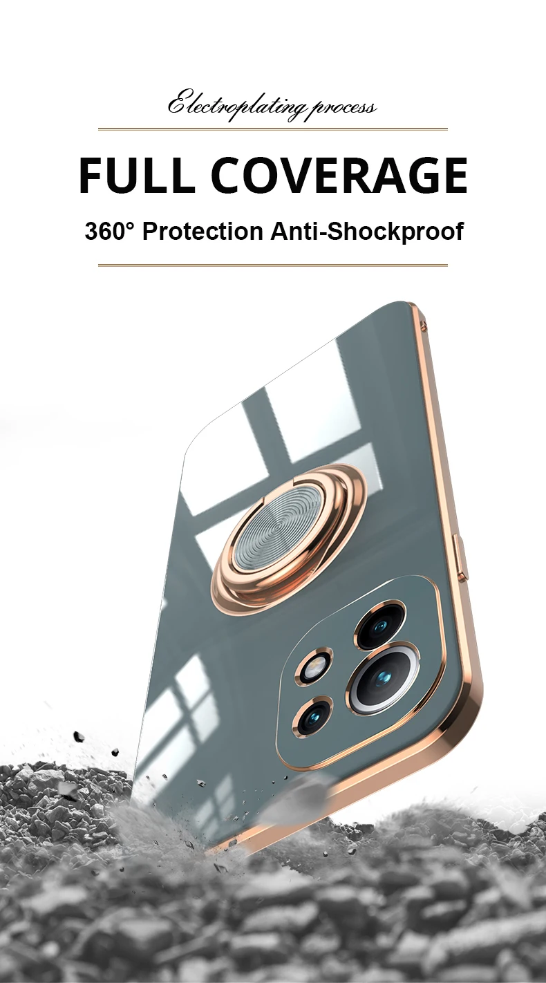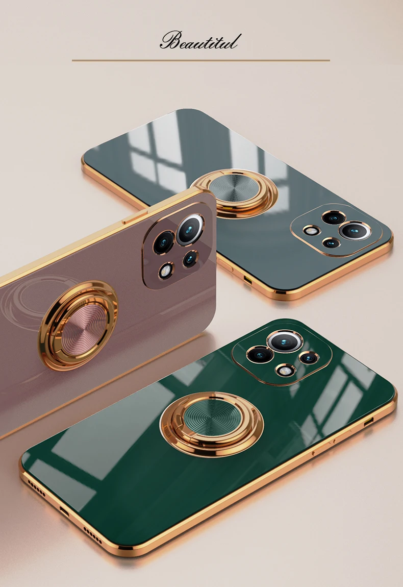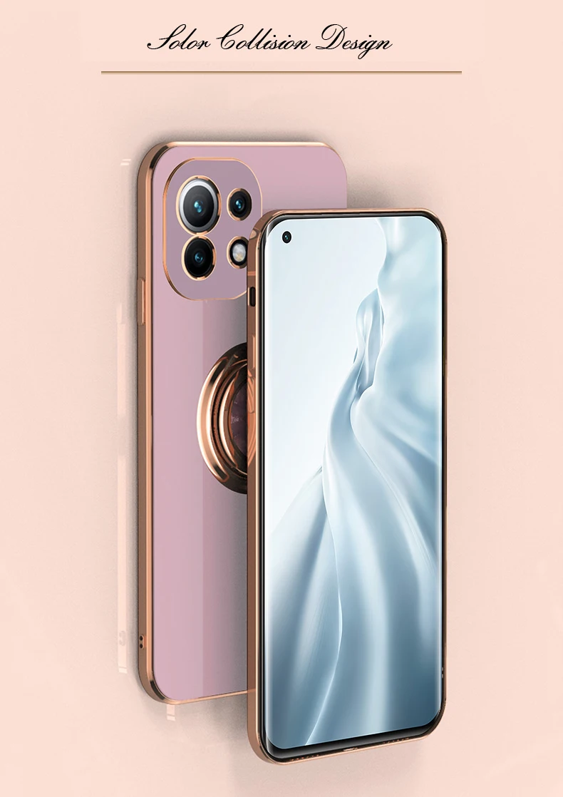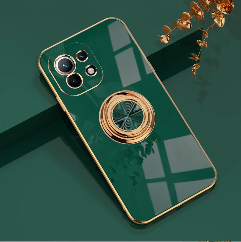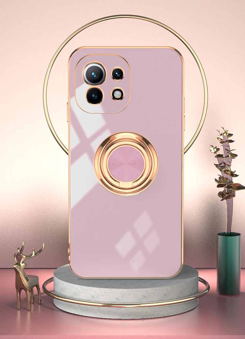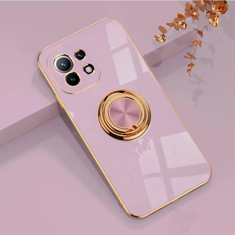 KEYSION Luxury Plating Case for Xiaomi Mi 11 Ultra 11 Pro 10T Lite POCO F3 F2 Pro Ring Stand Phone Cover for Redmi K40 Pro K30