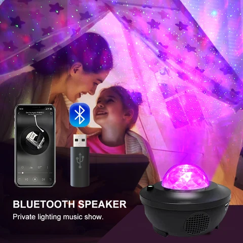 • USB Ocean Wave Night Light Galaxy Projector Starry Sky Children Christmas Gifts Home Room Decoration Music Bluetooth Speaker