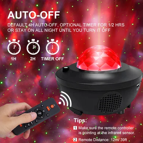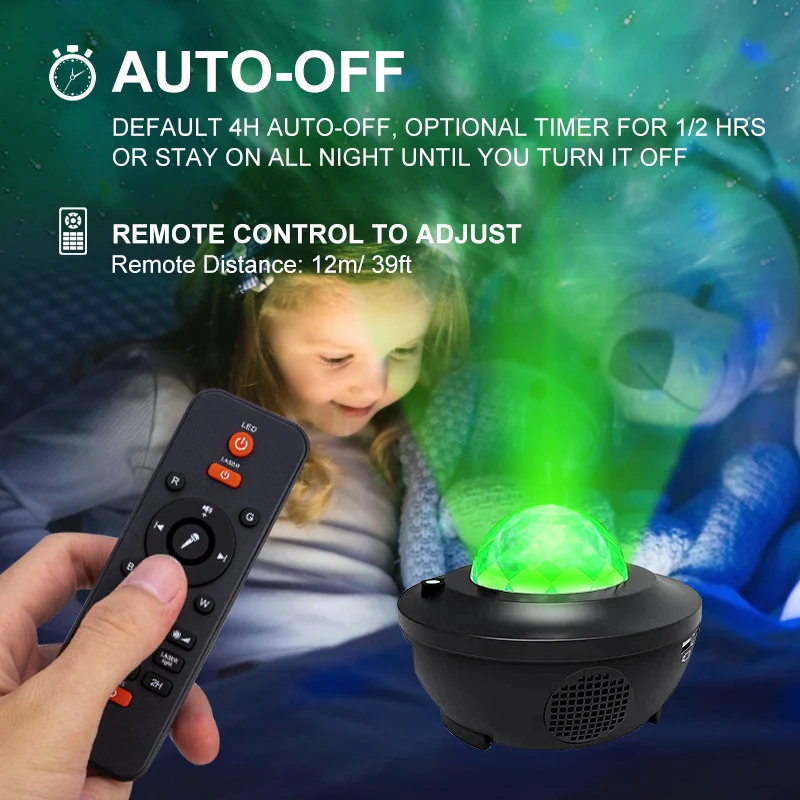 ✨[Auto Control Timer] Enjoy wonderful moments, don’t worry about forgetting to turn off the lights. Projection of romantic fantasy starry on the bedroom every night, play favorite music, built-in 1H, 2H, or no operation 4H automatic shutdown timer function, saving more money. It can create a warm and quiet sleeping environment to help you and your child fall asleep quickly and smoothly.