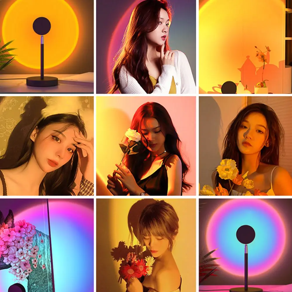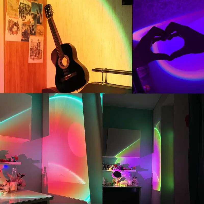 16 Colors RGB Sunset Projection Lamp Rainbow Atmosphere Led Night Light For Home Bedroom Background Wall Deco Photography