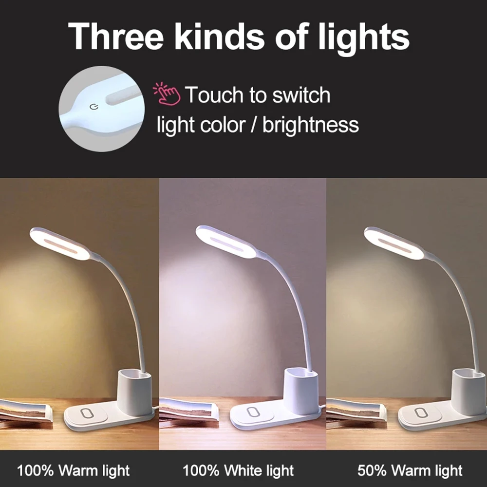 3. The fast charging desk lamp does not flicker, emits soft light, provides a comfortable feeling and reduces eye fatigue.