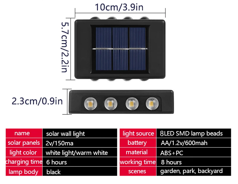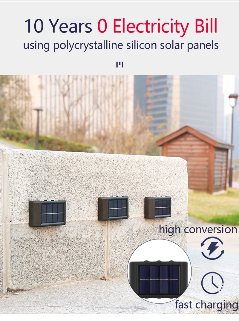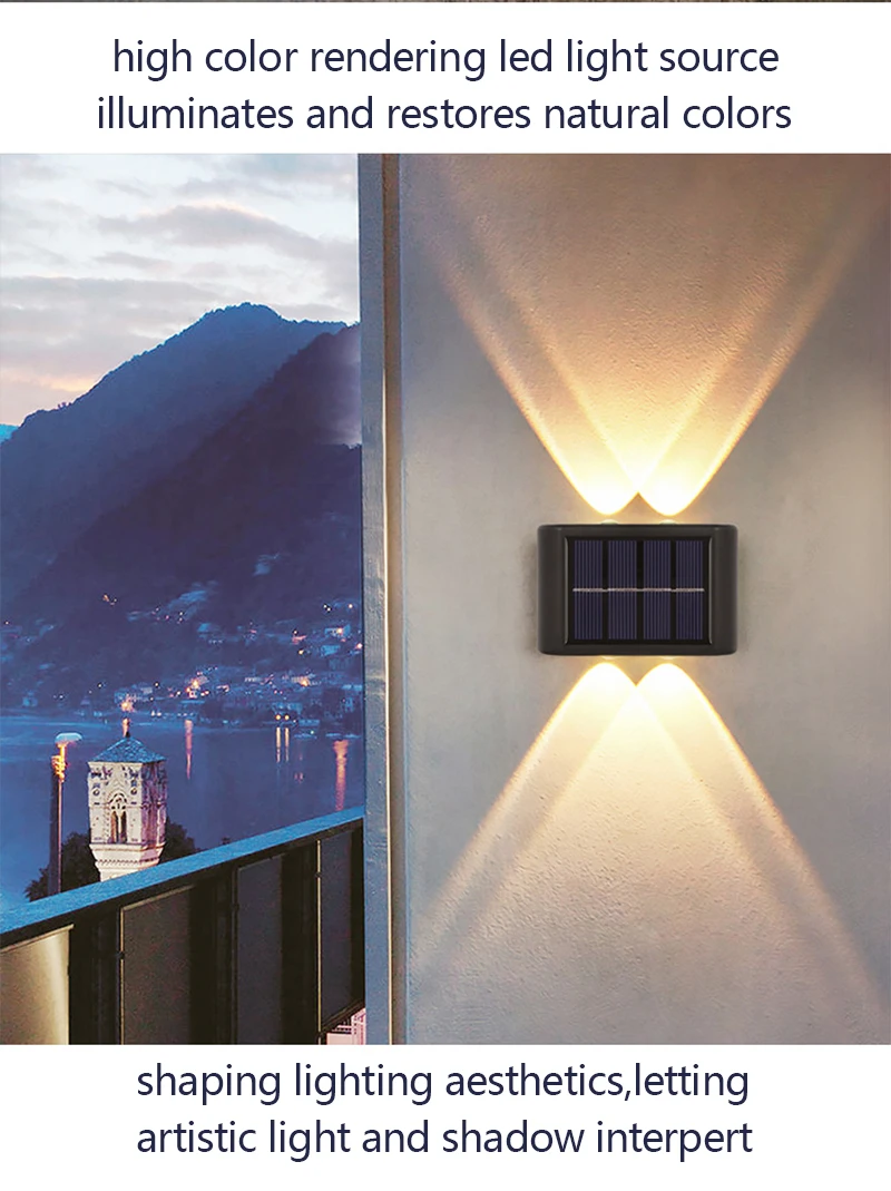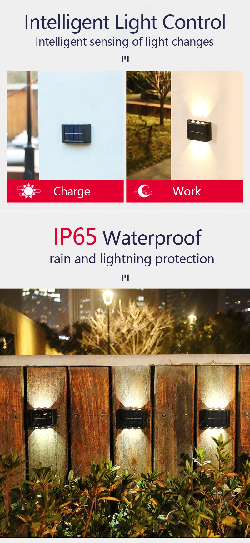 LED Light Garden Solar Lamp Outdoor Fence Light House Waterproof Wall Sconce Lamp Up Down Lighting Garden Decoration