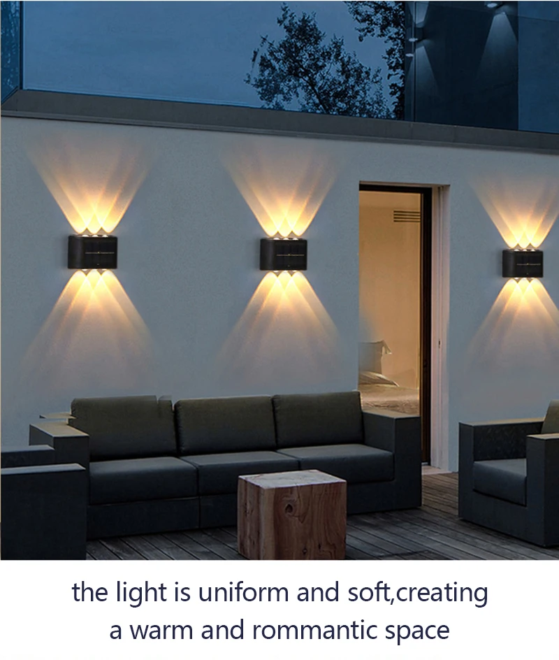 • A modern outdoor wall light will distribute light evenly up and down. The three beams of lights in the same direction are interlaced, and the design is full of sense, which is the perfect complement to your modern home. Great for enhancing the look of your home.