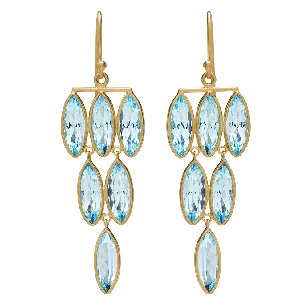 Newest Women Wedding Dangle Earrings Tassel Marquise Light Blue Stone Elegant Female Party Accessories Statement Jewelry
