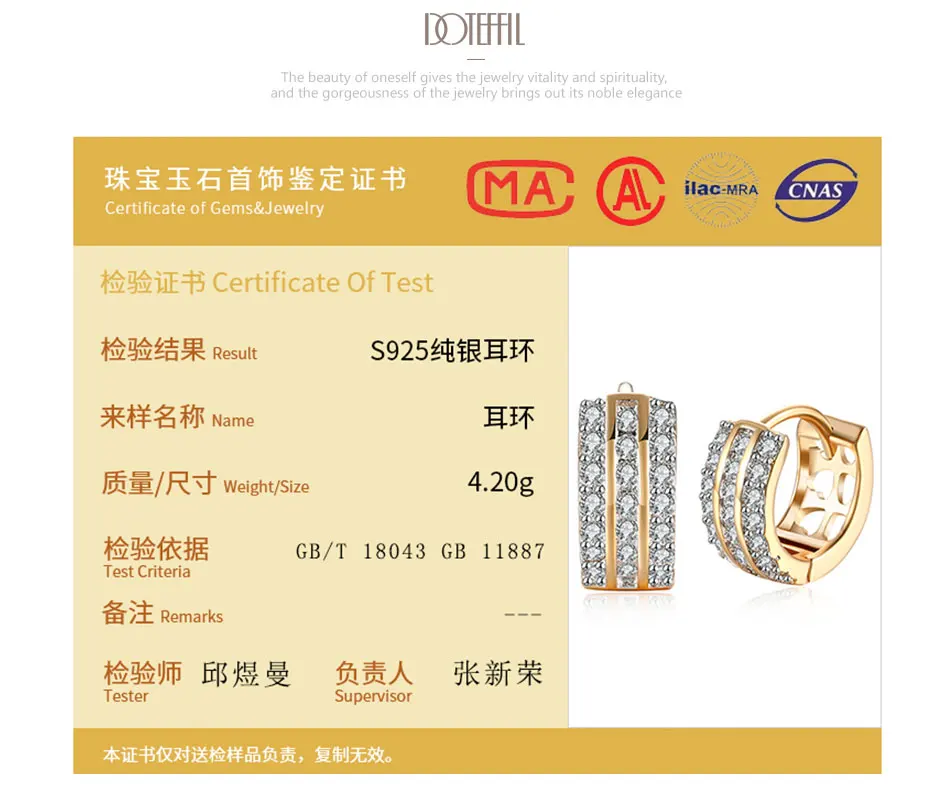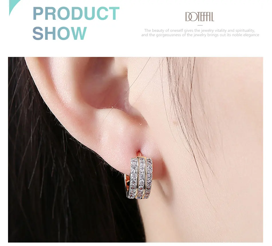 DOTEFFIL 925 Sterling Silver 18K Gold Three Rows AAA Zircon Romance Earrings Fashion Woman Wedding Engagement Party Gift Jewelry