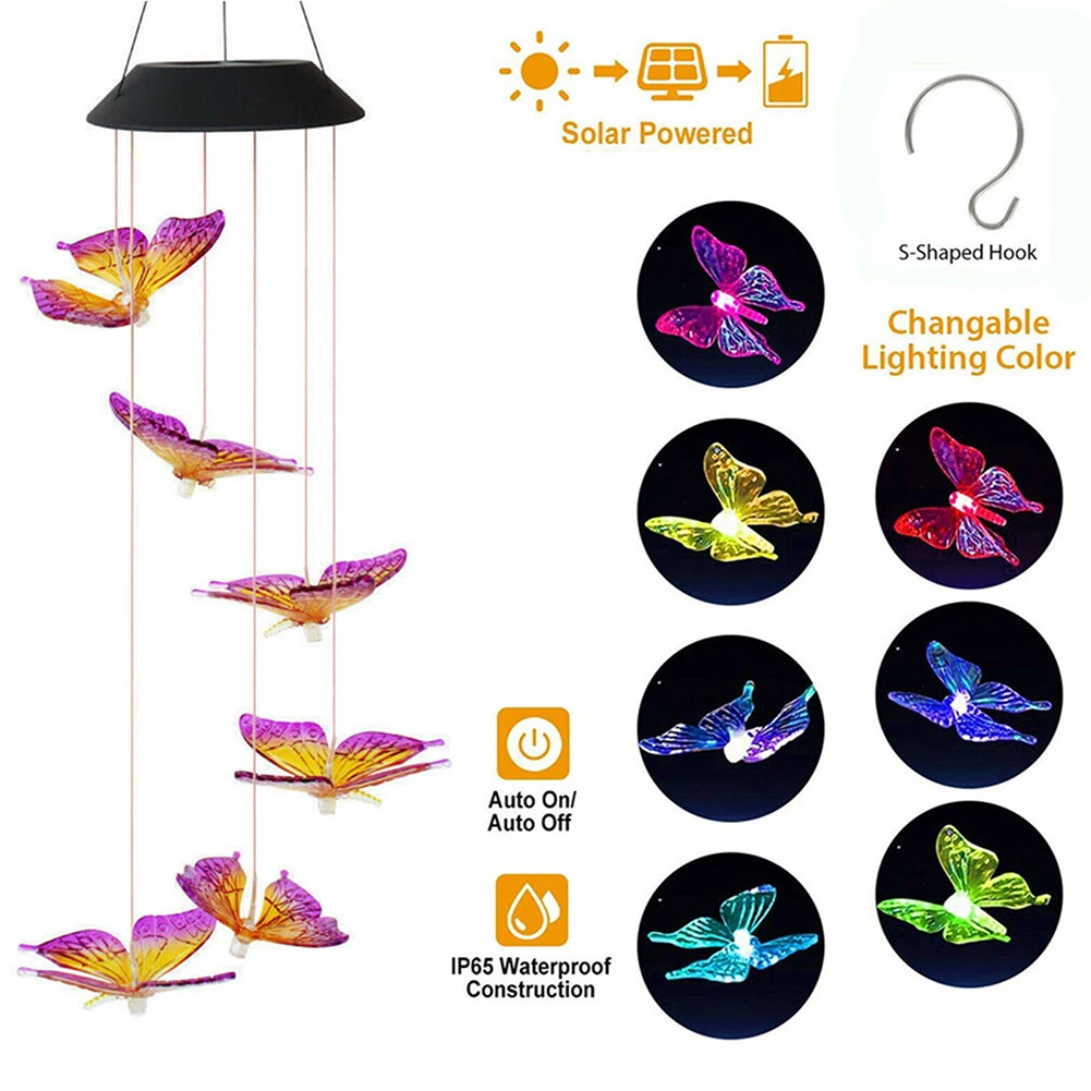 ![]() LED Solar Wind Chime Butterfly Light Color Changing Waterproof Outdoor Windchime Hanging Lamp for Garden Patio Yard Decoration Description: The butterfly solar LED wind chime is a decorative light that uses solar energy to supply power and is composed of a number of LED lights. The lamps use high-efficiency solar panels, which can convert solar energy into electric energy and store it in a built-in battery for LED lights to emit light. The unique light control technology can ensure that the lamps are automatically charged during the day (when the light is sufficient), and automatically lighted at night (when the light is insufficient). Easy installation, no wiring, waterproof and sunscreen, and power saving. Widely used in roads, courtyards, showcases, shops, stages and other places to create a warm and romantic living atmosphere. Specification: Color: A Maple Leaf Red; B Purple; C Transparent Solar Panel: 2V 80mA Rechargeable battery: 1.2V 400mAh AA Ni-MH battery LED: 6 LEDs with 4 colors Mode: 7 Color slow flashing Accessories: hook Size: as shown Type: Solar Garden Light Rated power: less than 5W Waterproof: IP65 Note: Due to the different monitor and light effect, the actual color of the item might be slightly different from the color showed on the pictures. Thank you! Please allow 1-3mm measuring deviation due to manual measurement. ![]() 1 x Wind Chime Butterfly Light ![]() ![]() ![]() ![]() ![]() ![]() ![]() ![]() ![]() ![]() ![]() ![]() ![]() ![]() ![]() ![]() ![]() ![]() ![]() ![]() ![]()
