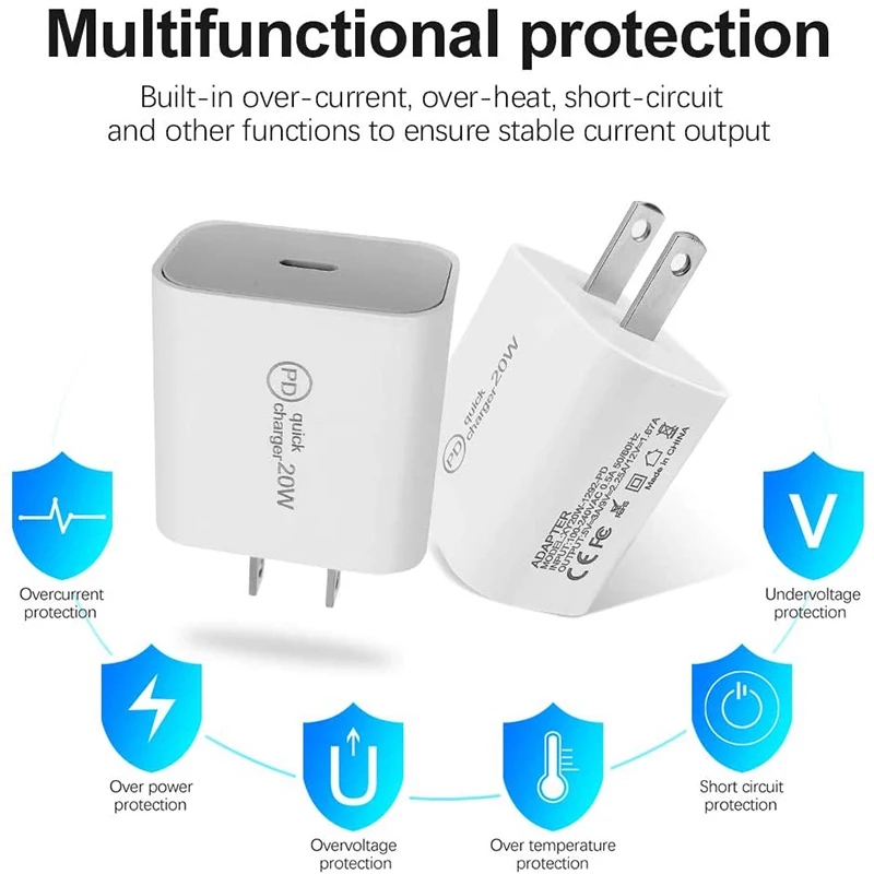 20W PD Charger Fast Charger ​​USB-C Power Adapter PD Cable Charger For IPhone13 12/11 Pro Max XR Huawei Xiaomi for Samsung