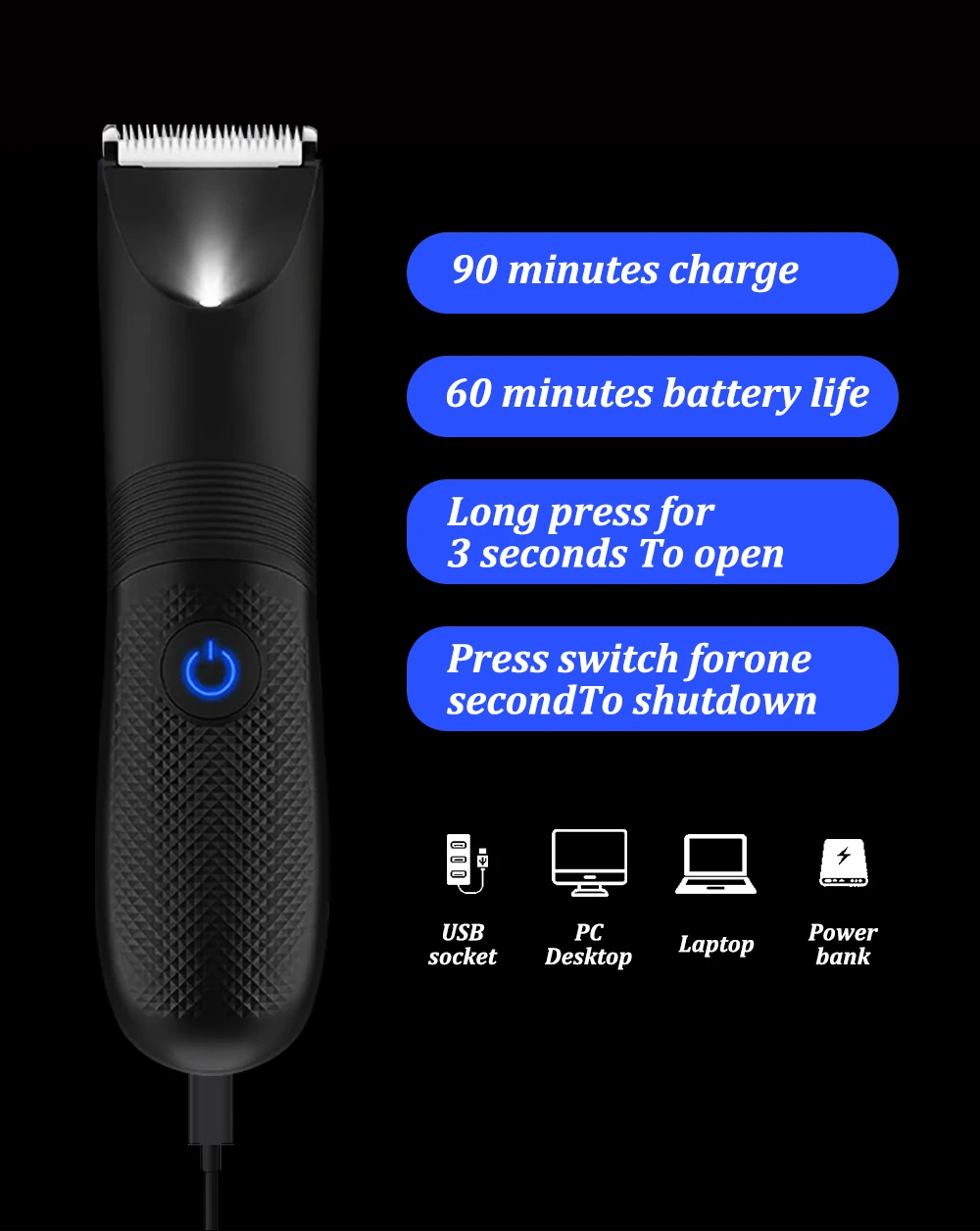 Electric Groin Hair Trimmer for Men Pubic Hair Trimmer Body Grooming Clipper Rechargeable Ultimate Male Hygiene Razor