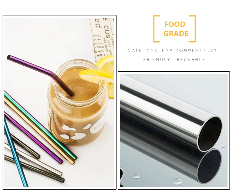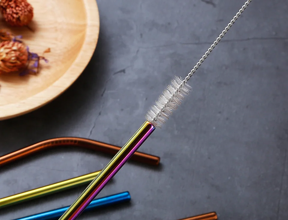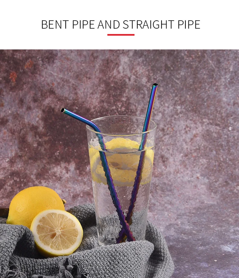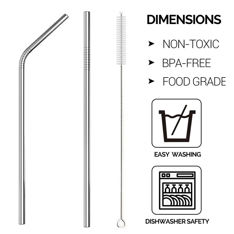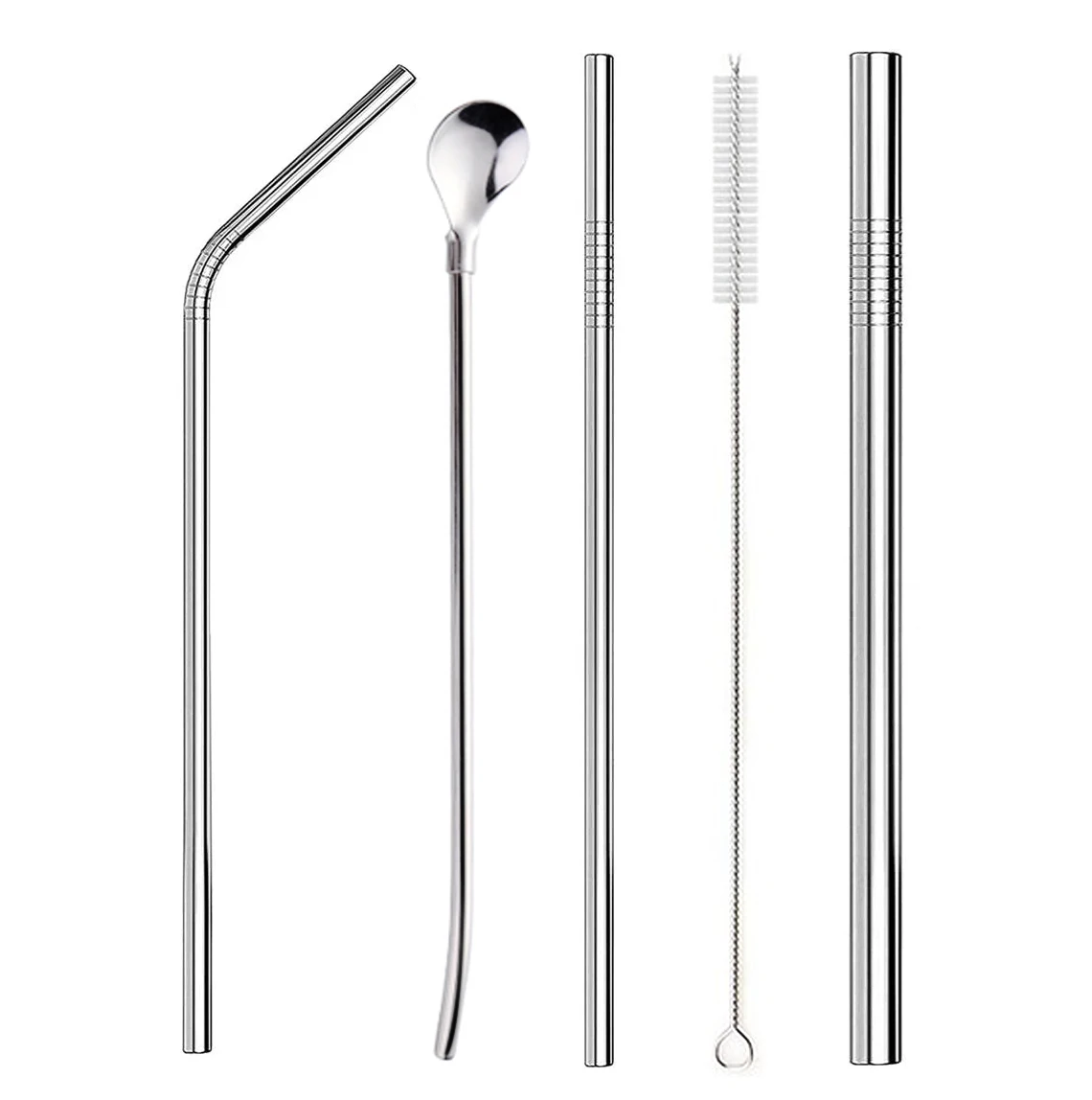 Reusable Metal Drinking Straws 304 Stainless Steel Straw Sturdy Bent Straight Straw with Cleaning Brush Bar Party Acce