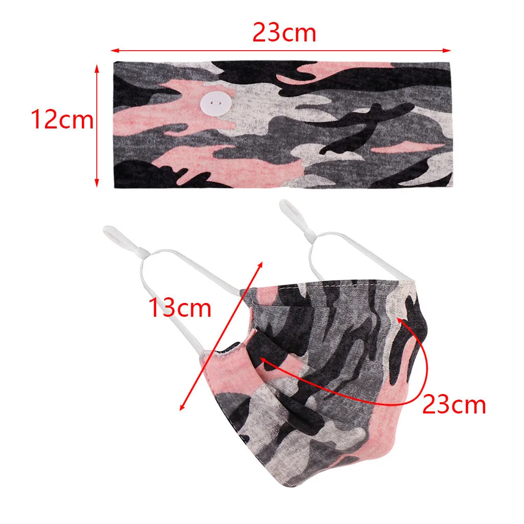 Button Head Band Mask Turban Hair Accessories Soft Yoga Sports Elastic Hair Band Fashion Hair Band with Mask Unisex