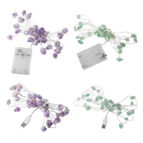 String Lamp USB/Battery Powered Natural Crystal Stones Fairy Lights Garlands Garden Christmas Decoration