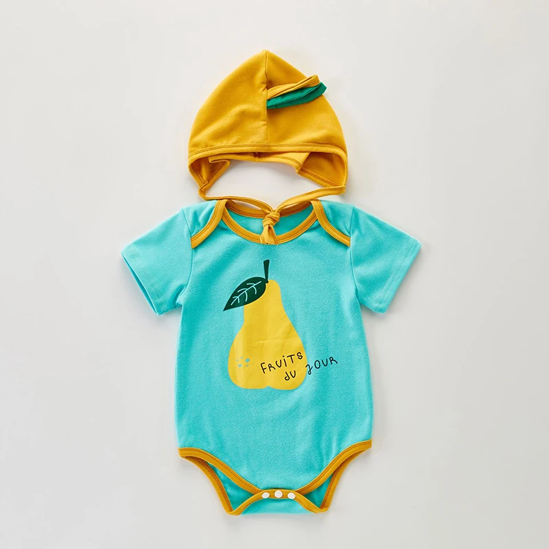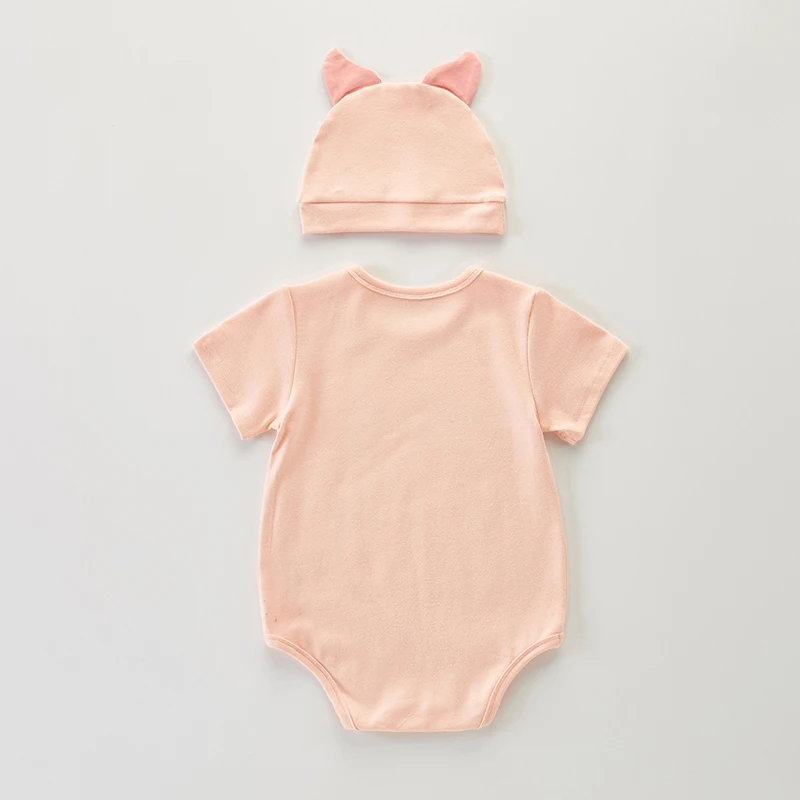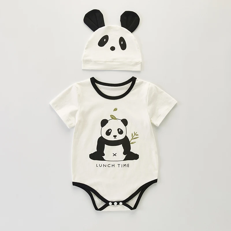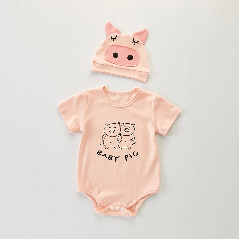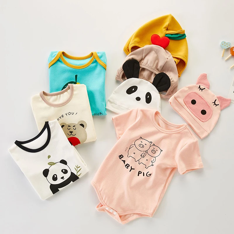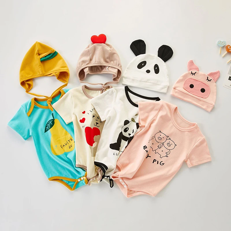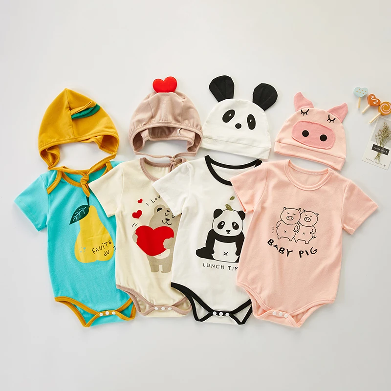 Summer Baby Bodysuits Short Sleeve Boys One Piece Animal Print Toddler Girls Clothes with Hat