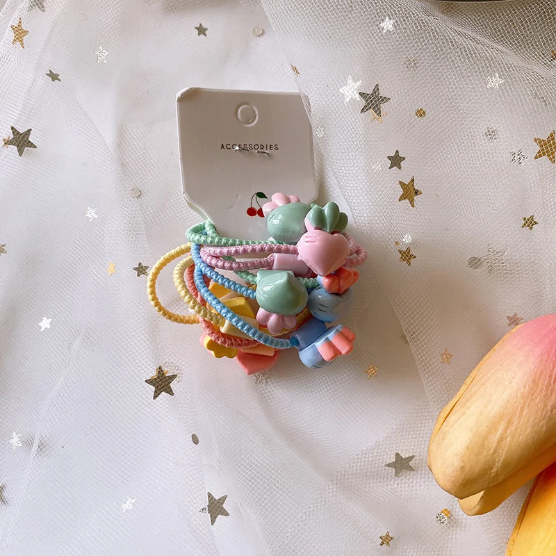 10PCS New Cute Cartoon Candy Fruit Princess Headwear Kids Elastic Hair Bands Children Ropes Girls Accessories Baby Headdress