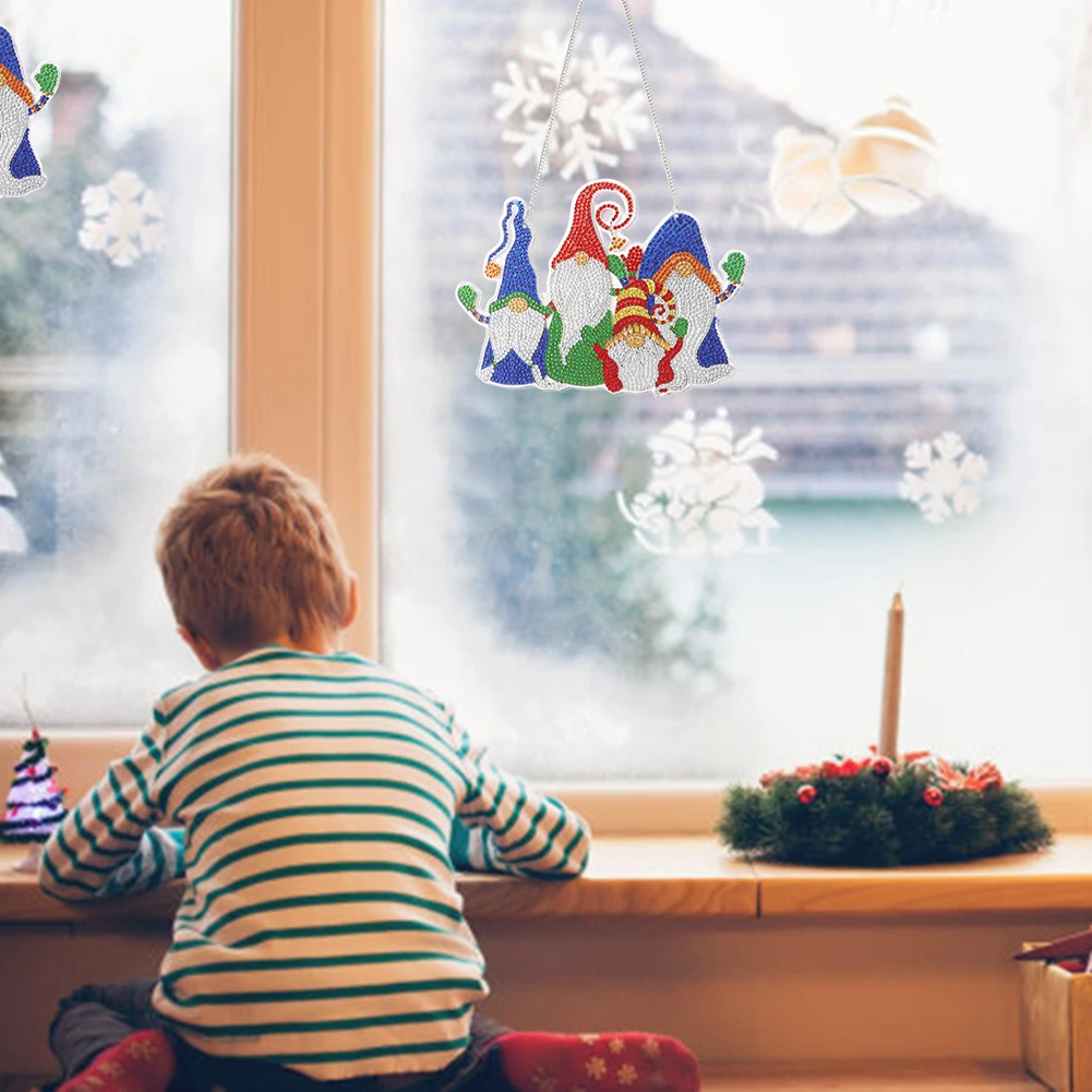 Gnome Doll DIY Diamond Painting Applique Rhinestone Acrylic Christmas Pendant Wall Hanging Mosaic Door Window Decor