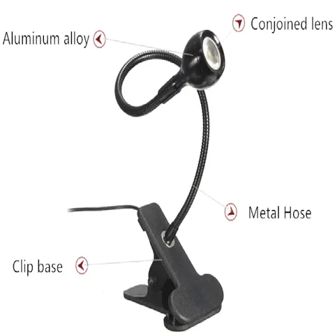 1pc 3W Flexible Book Light LED Universal USB Power Holder Night Desk Clip Lamp Bed Reading Table for the Study Room Bedroom Living
