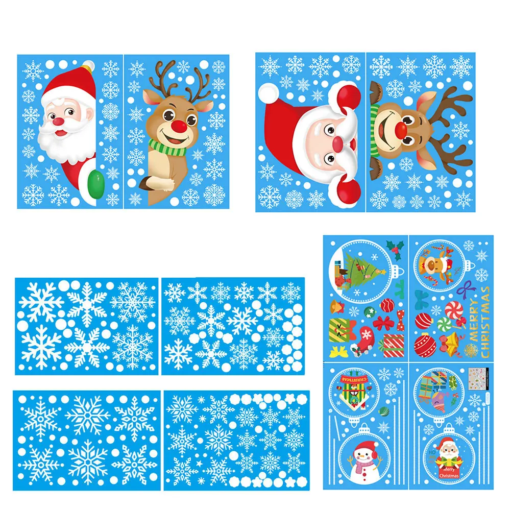 Christmas Window Stickers Santa Claus Elk Merry Christmas Decorations for Home Xmas Shop Glass Ornaments Kids Room Wall Decals Happy New Year Decor