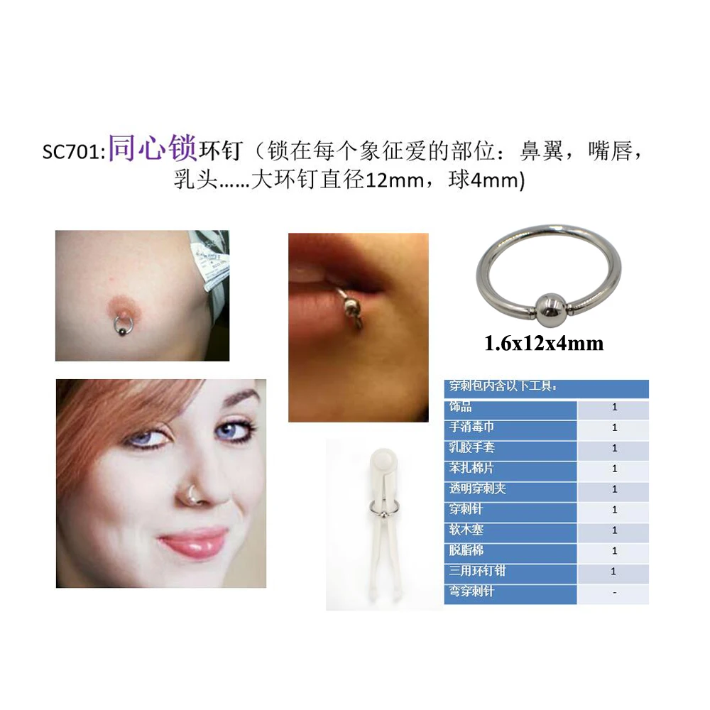 Pack Disposable Sterile Medical Body Piercing Kit Ear For Nose Nipple Belly Navel Septum Piercer Tool Machine Kit Piercing