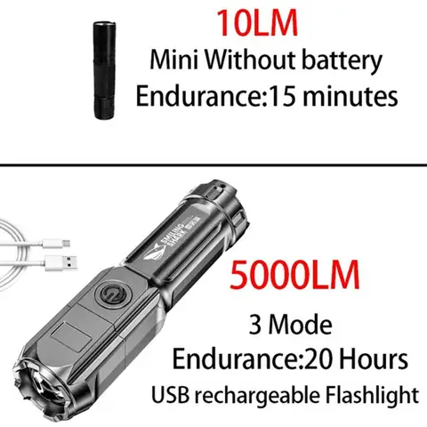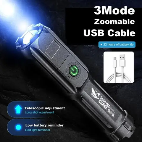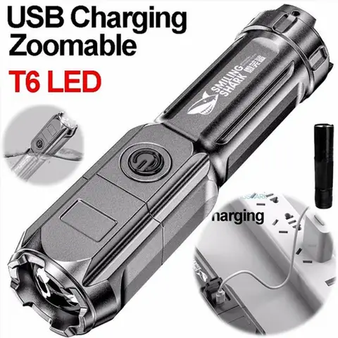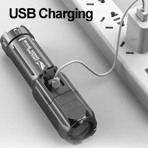 Super ABS Strong Light Focusing Led Flashlight Outdoor Portable Home Built-in Battery Rechargeable Multi-function Torch