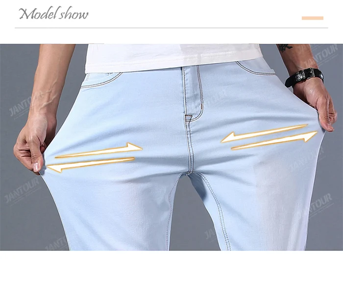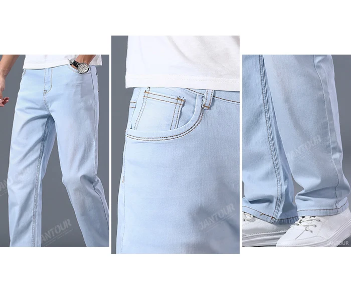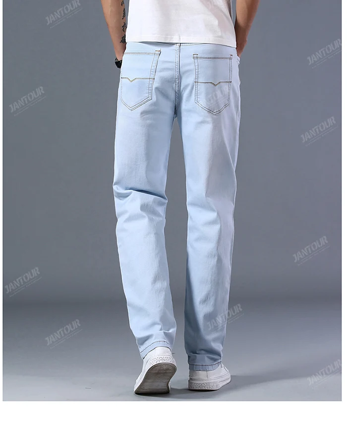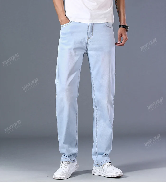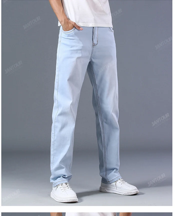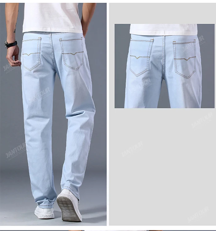 Summer Men Thin Jeans Loose Business Casual Light Blue Elastic Force Fashion Denim Jeans Trousers Male Brand Pants