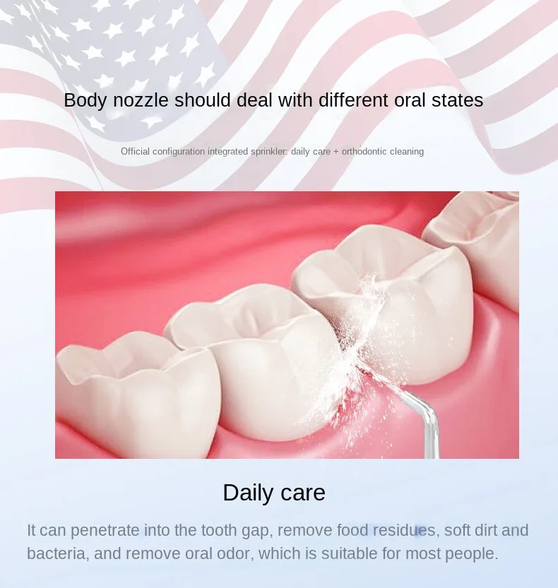 ● Configure two nozzles: daily care + orthodontic cleaning.