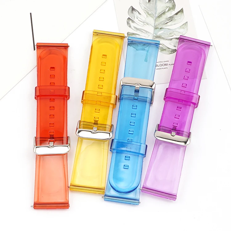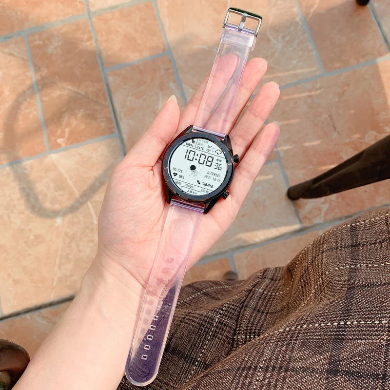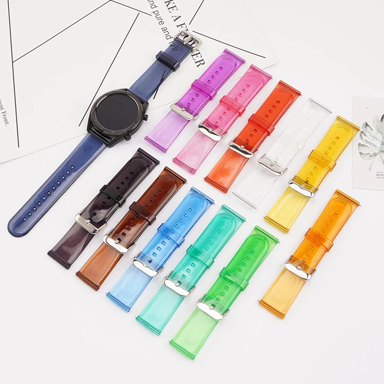 22mm Transparent PVC Strap Colorful Men Women Replacement Band for Samsung Active2 40mm 44mm Huawei Watch GT 2 Amazfit GTS