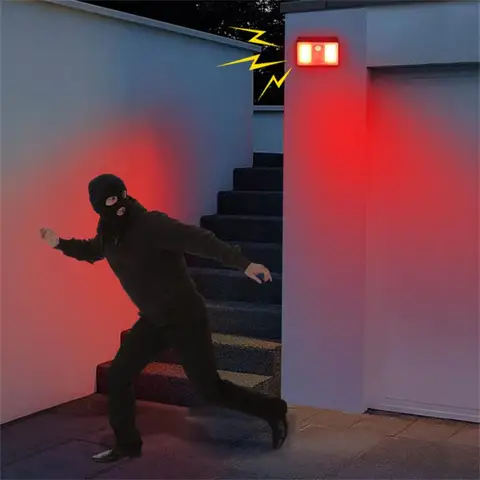【You Need】Solar motion light motion siren alarm 129dB motion flashing red LED lighting remote control.