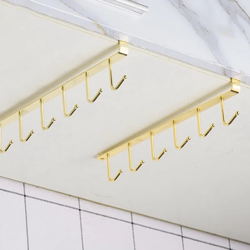 2021 New Hot Fashion 6 Hooks Metal Under Shelf Mug Cup Cupboard Kitchen Organiser Hanging Rack Holder
