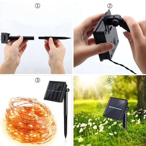 * Easy to install: Solar panel with ground stake, you can insert into the ground of garden, yard and more, perfect for wrapping around a tree or wherever you like to light up your garden, patio, lawn, porch, gate, yard, etc.
