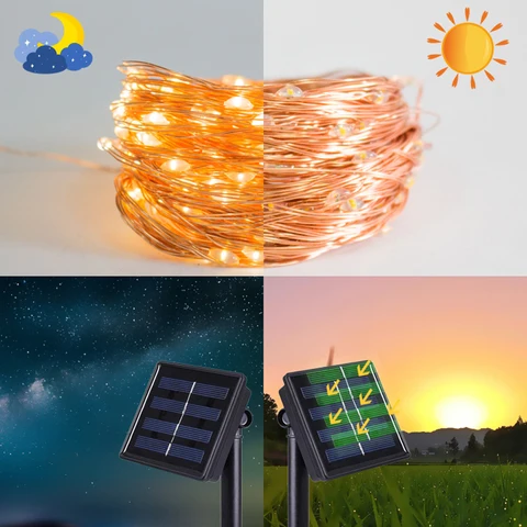 * 8 lighting modes: The solar string lights offer 8 modes to change, create different atmospheres to your garden, patio, lawn, porch, gate, yard, trees, party, wedding etc.