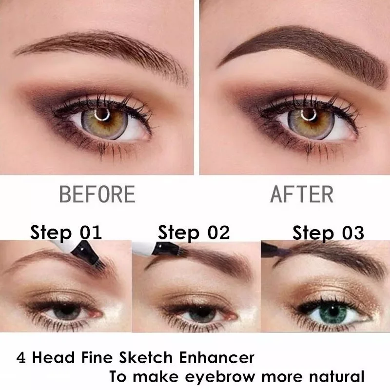 IN Four-Pronged Eyebrow Pencil Eyebrow Brush Split Liquid Waterproof Long-Lasting Eyebrows Enhancer Pencil Eyebrow Shadow