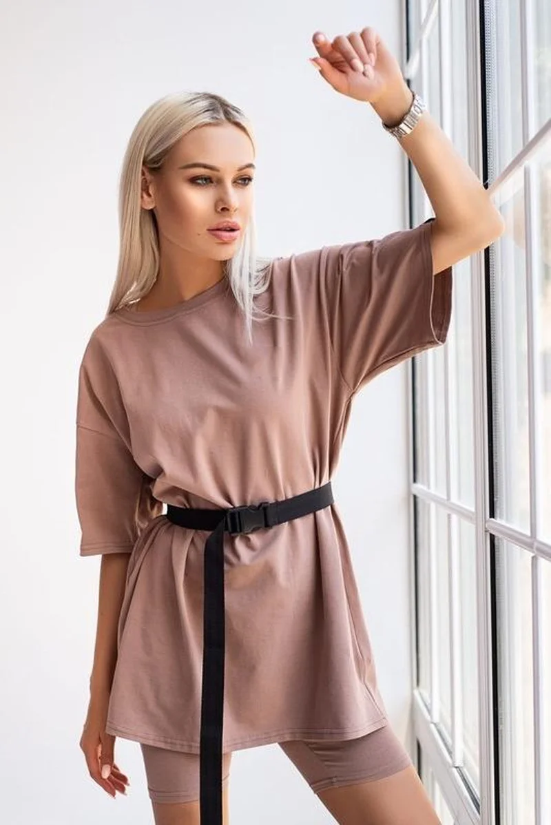 Summer Women Set O Neck Loose Short Sleeve Top Shirt and Bodycon Cycling Shorts Women Bottom Suit Two Piece Sets Outfit