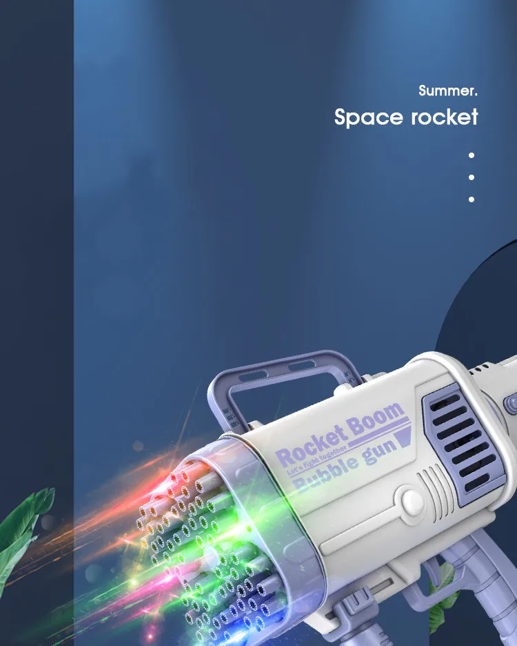 -Innovative Bubble Gun Design: The bubble rocket launcher has 10/5 bubble holes, blowing thousands of colorful bubbles every minute.with colorful light.more funny in night