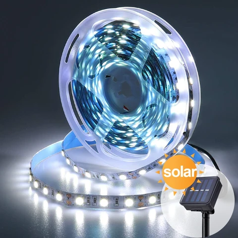 •Rugged And Durable: IP65 waterproof rating does not have to worry about harsh weather conditions. Made with flexible Strip Lights, coiled with bobbin winder to avoid a mess, the solar powered string lights (low voltage, no transformer included) is easy to storage and ready for the next use.Can be cut according to demand.