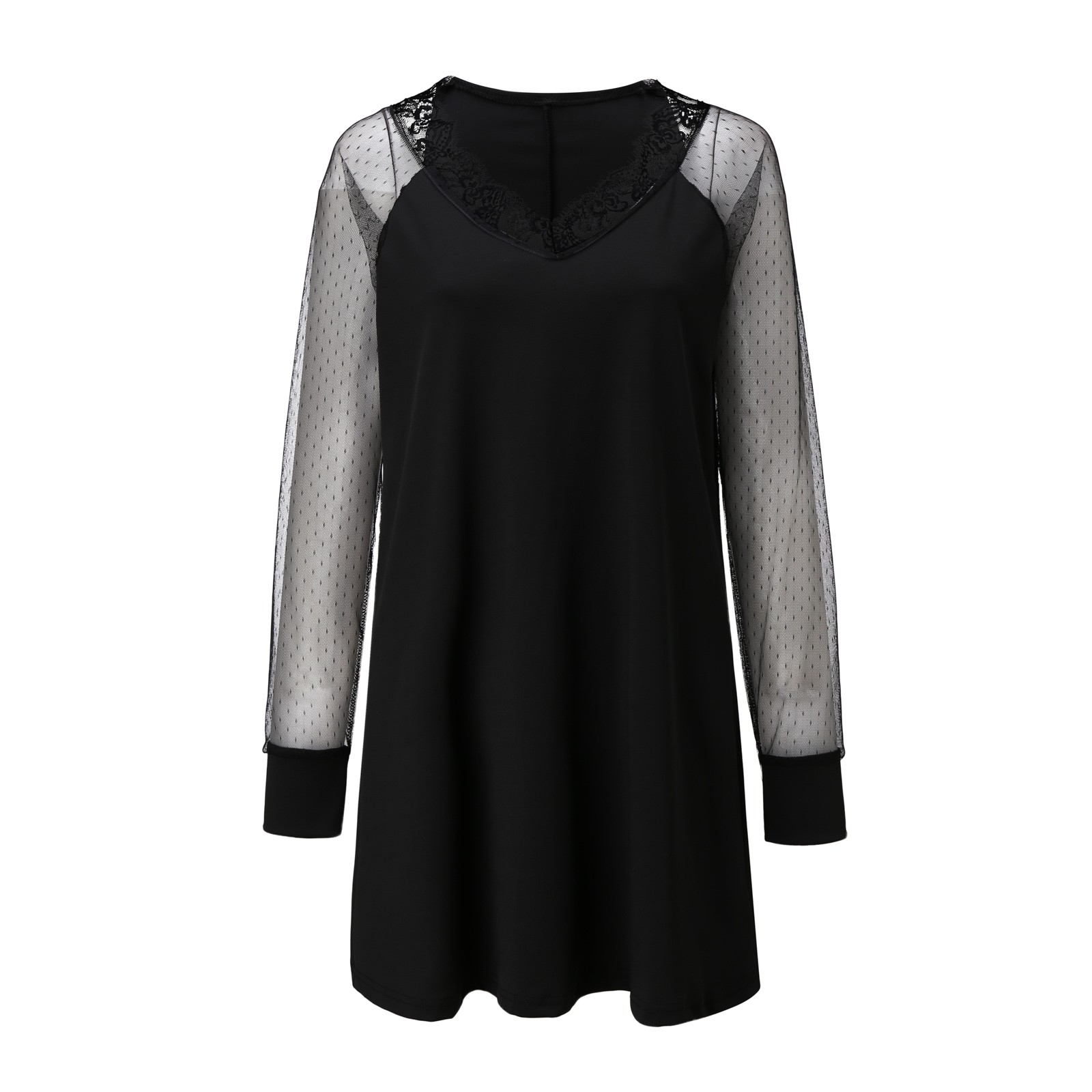Women perspective Mesh Chiffon Hollow Out O-Neck Double Plus Size Dress Skirt