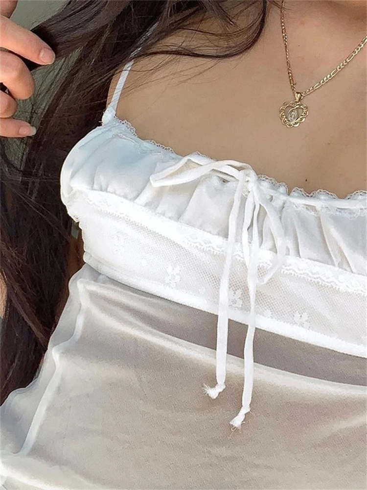 hirigin Women Vintage Camis Tube Tops Y2K Aesthetic Fairy Grunge Retro Tank Sweet Kawaii Bow Low Cut Mesh See Through Vest 2022