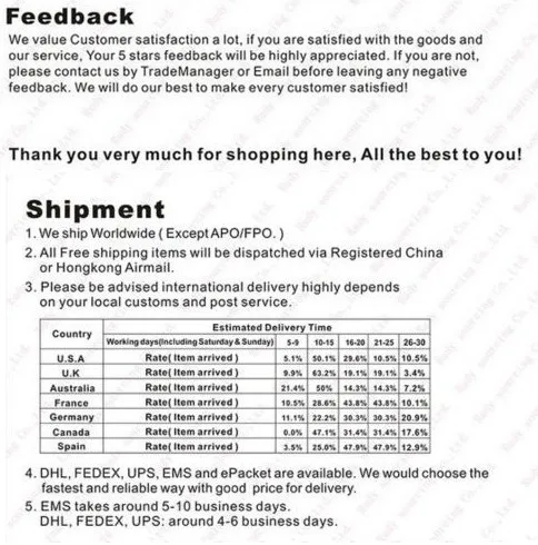 | Logistics mode | Estimated limitation of transportation (working day) | Country | District | Postcode | Weight(kg) | Gross freight |