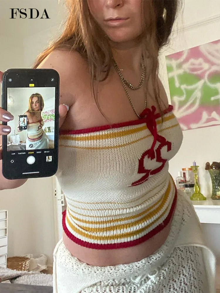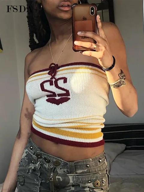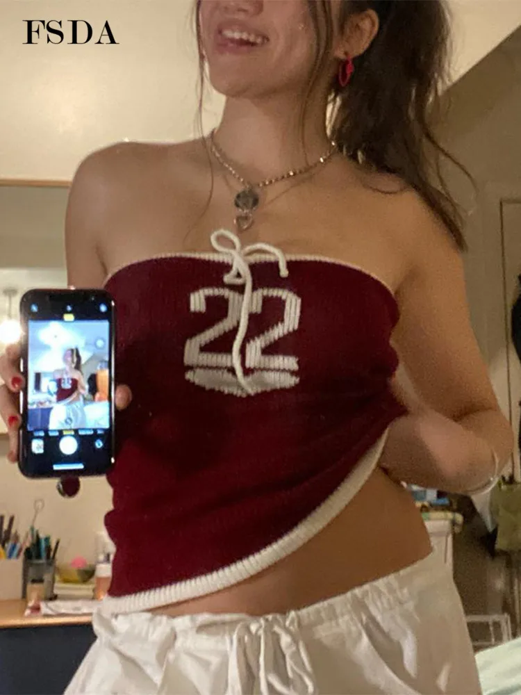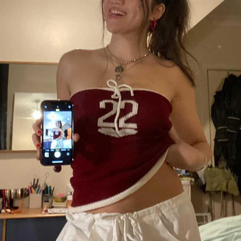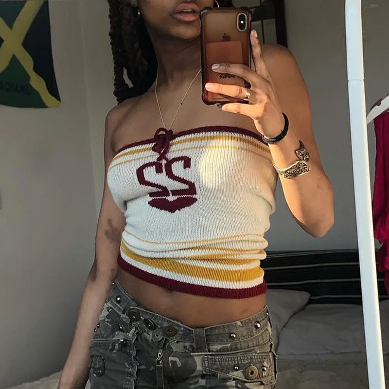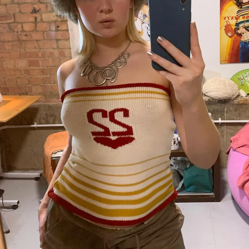 Knitted Letter Crop Top Strapless 2022 Y2K Tank Tops Women Sleeveless Summer Backless Sexy Beach Cami Fashion Vintage