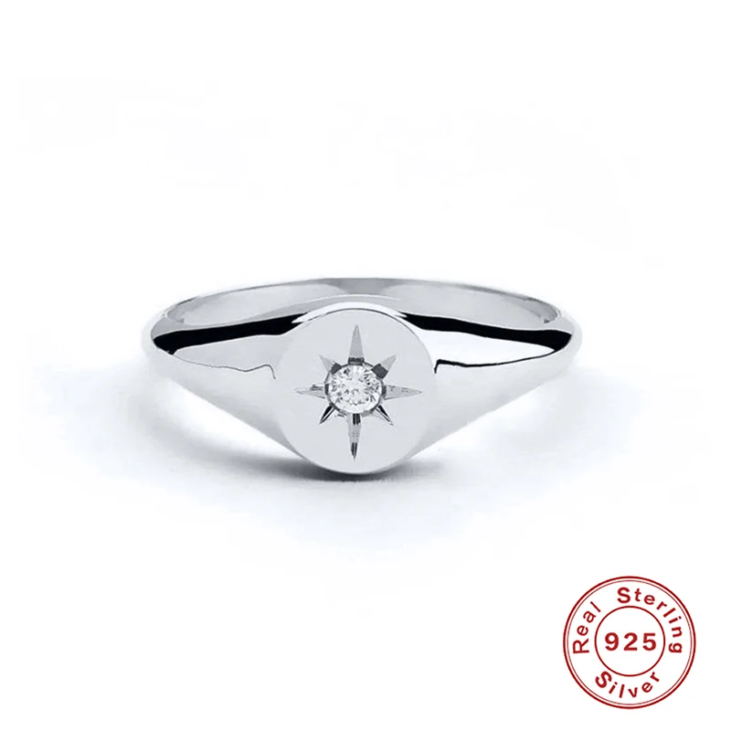 925 Sterling Silver Rings For Women Round Eight-Pointed Star Zirconia Diamond Ring Anel Masculino Luxury Jewelry