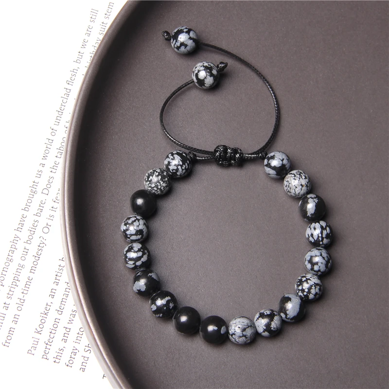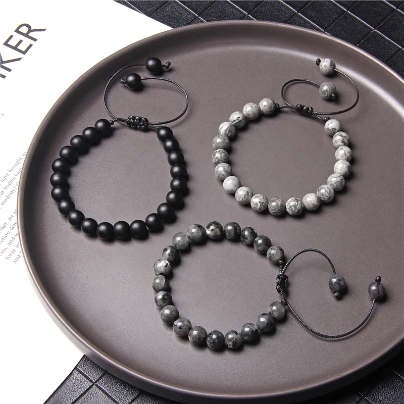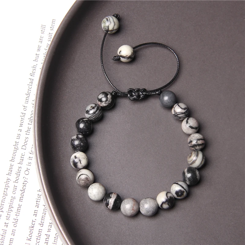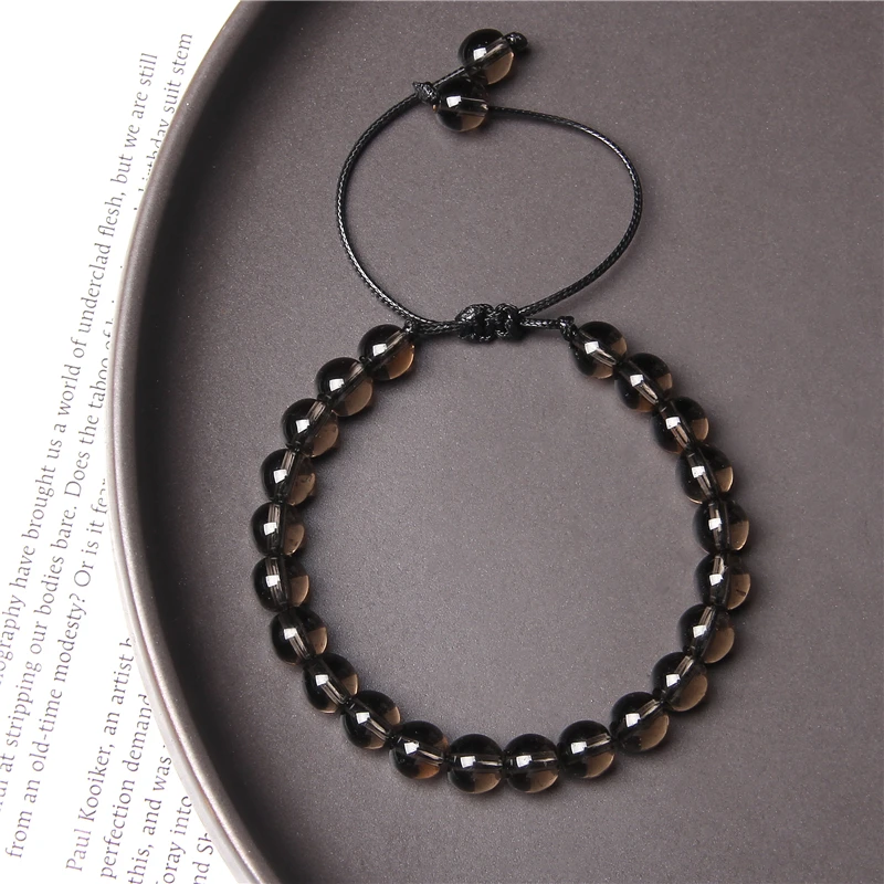 Stone beads Braided Bracelet Black Smoky crystal quartz Black Picasso Jaspers Map stones Rope Adjustable Woven Bracelet