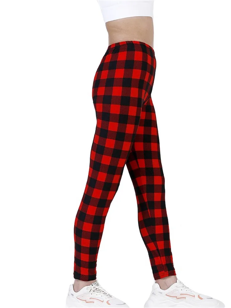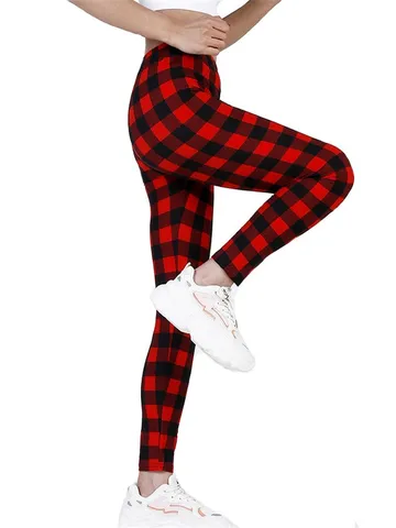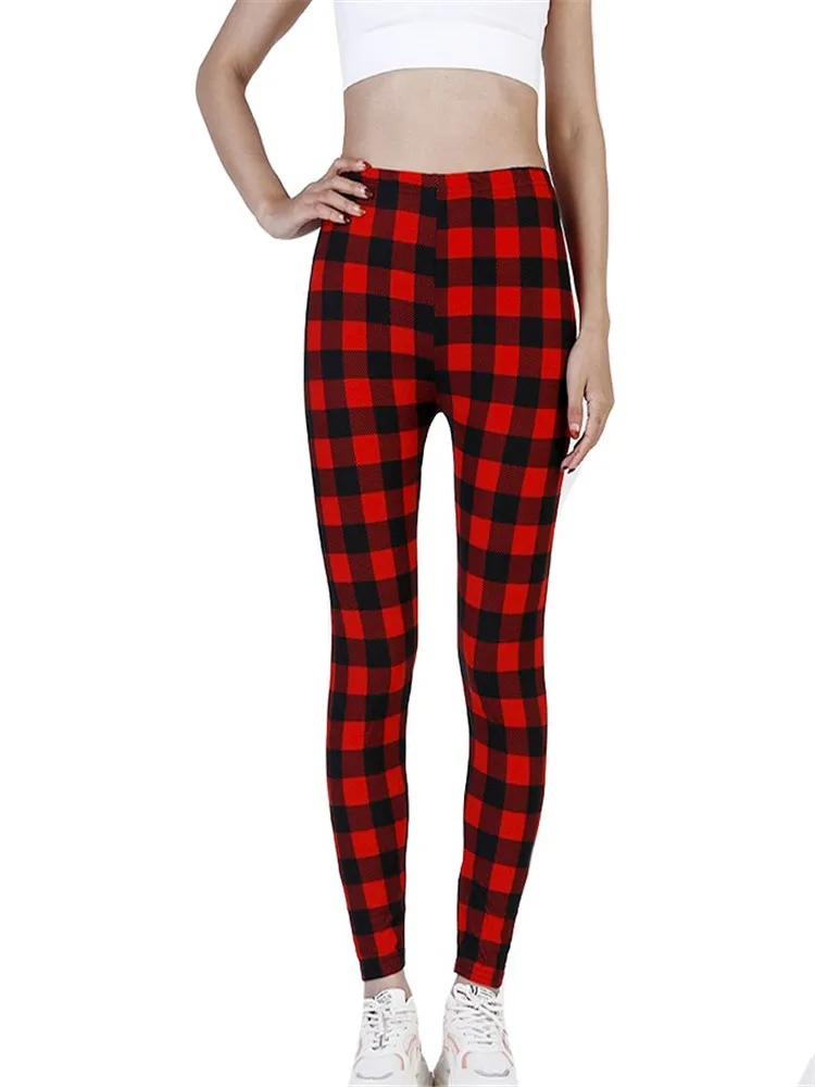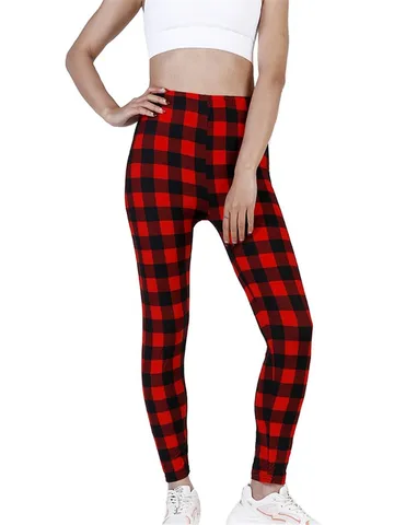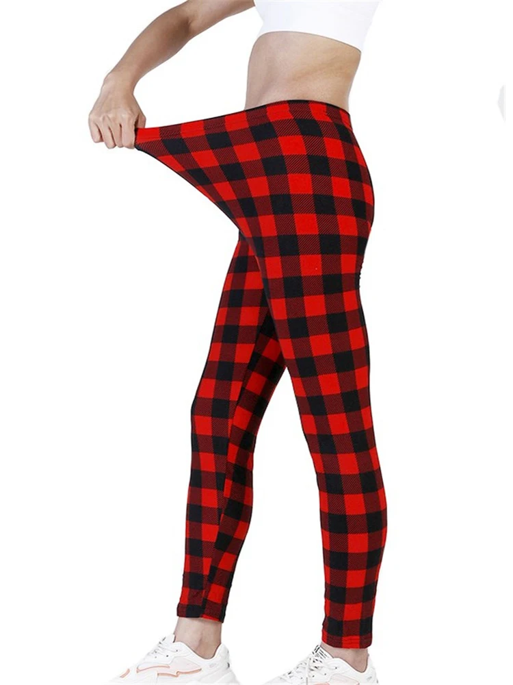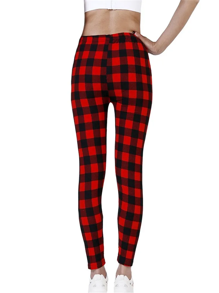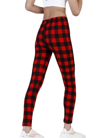 Plaid Leggings Women Sexy Pants Push Up Fashion Fitness Gym Sporting High Waist Trousers Printed Ankle Length Clothing
