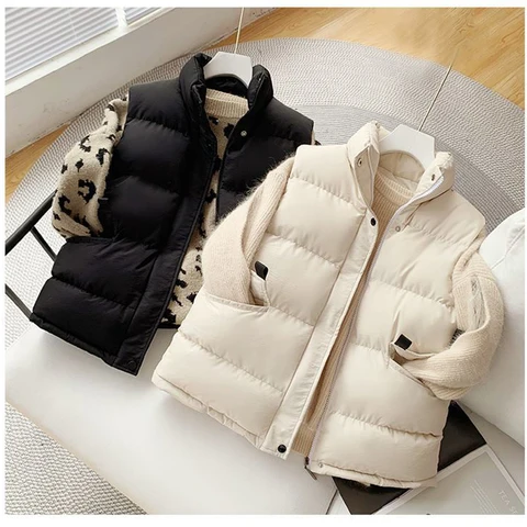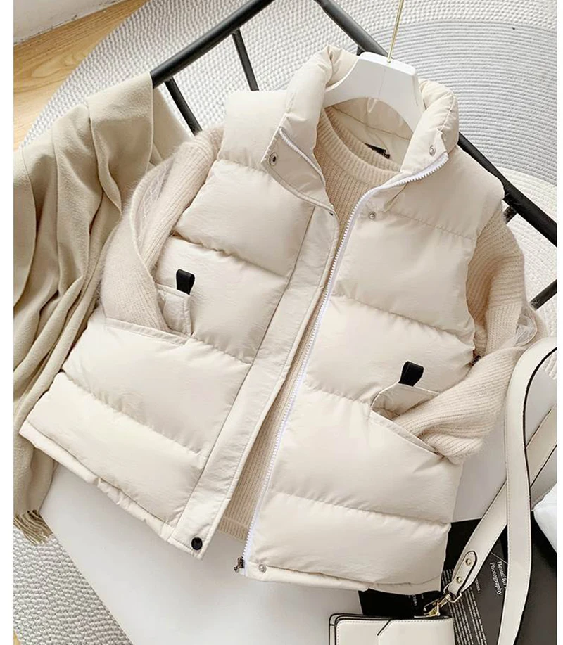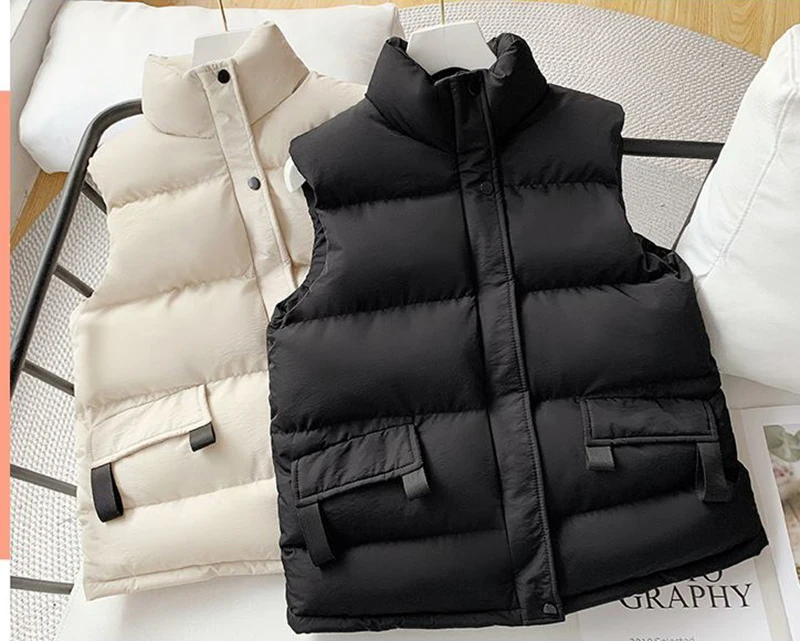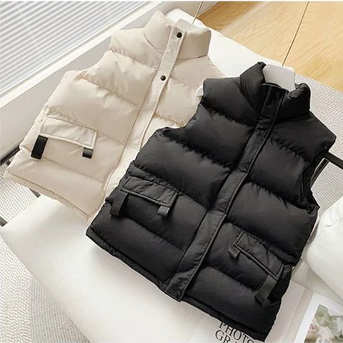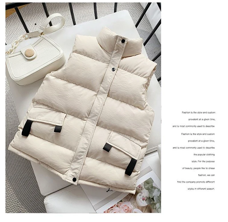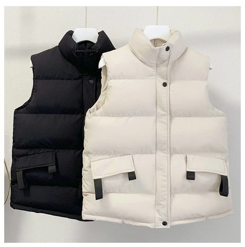 Autumn Winter Cotton Jacket Vest Women Loose Vest Waistcoat Zipper Warm Waistcoat Female White Duck Down Coat Sleeveless