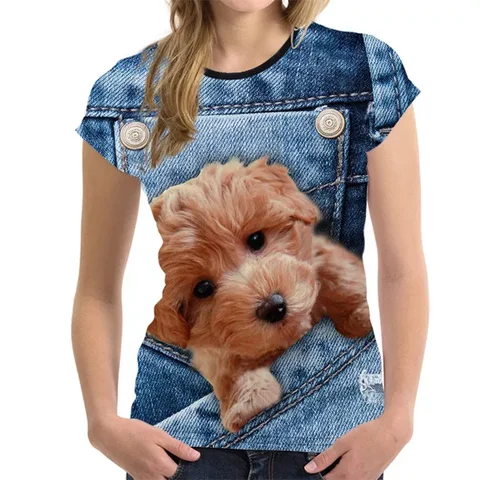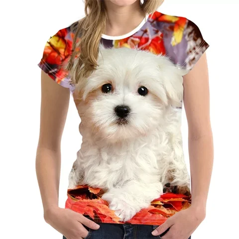 hoody blouse women set tube top sweater Fashion Lovely Dog 3D Print Women Ladies Girls T-Shirt Animal Harajuku Round Nec