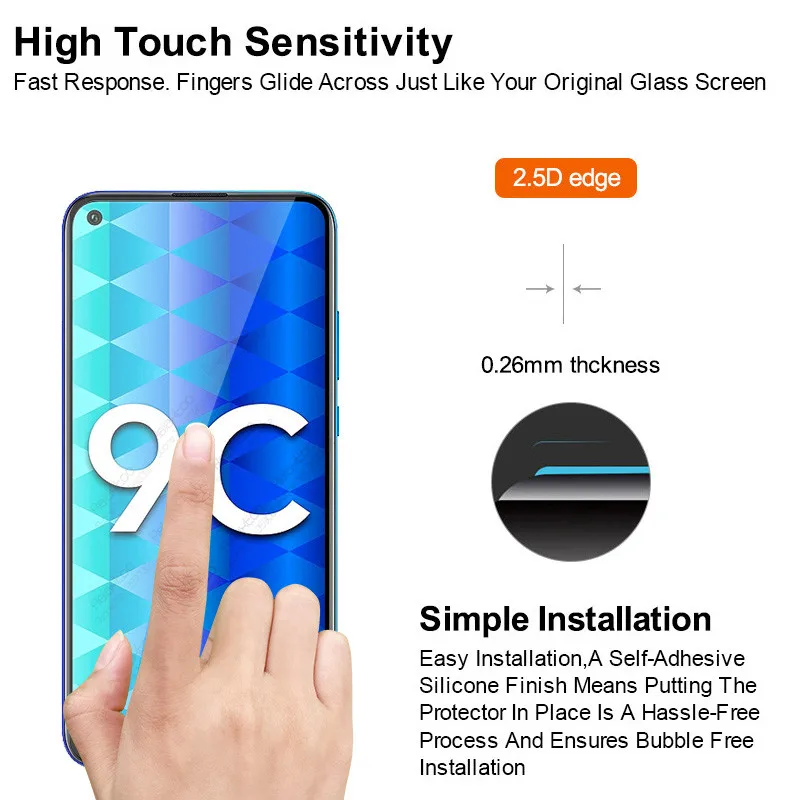 honor 9c Glass 2 in 1 camera lens tempered Glass For huawei honor 9c honer 9 c honor9c 6.39" screen protector protective Film