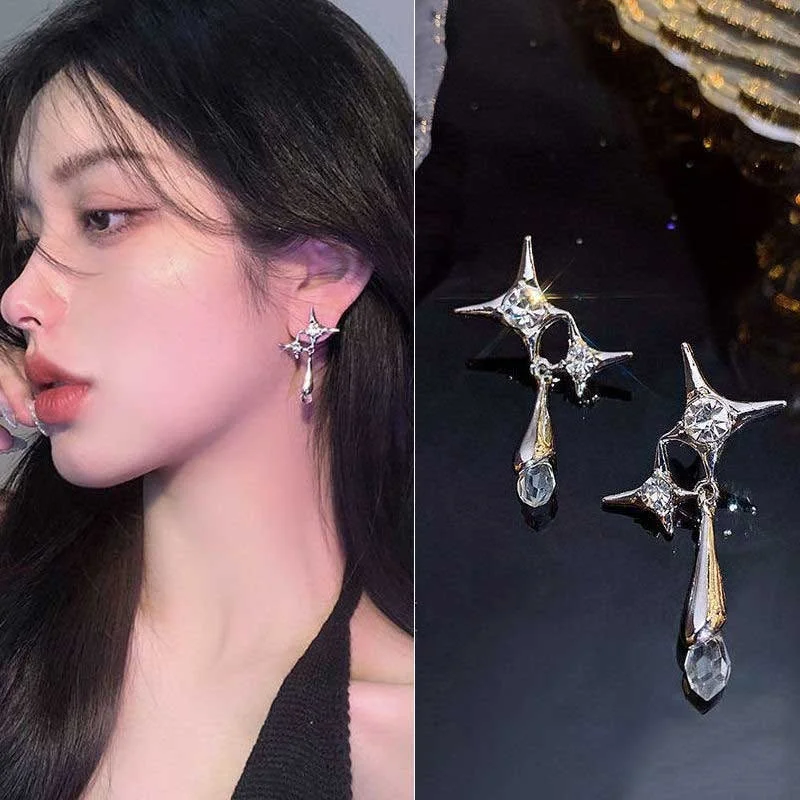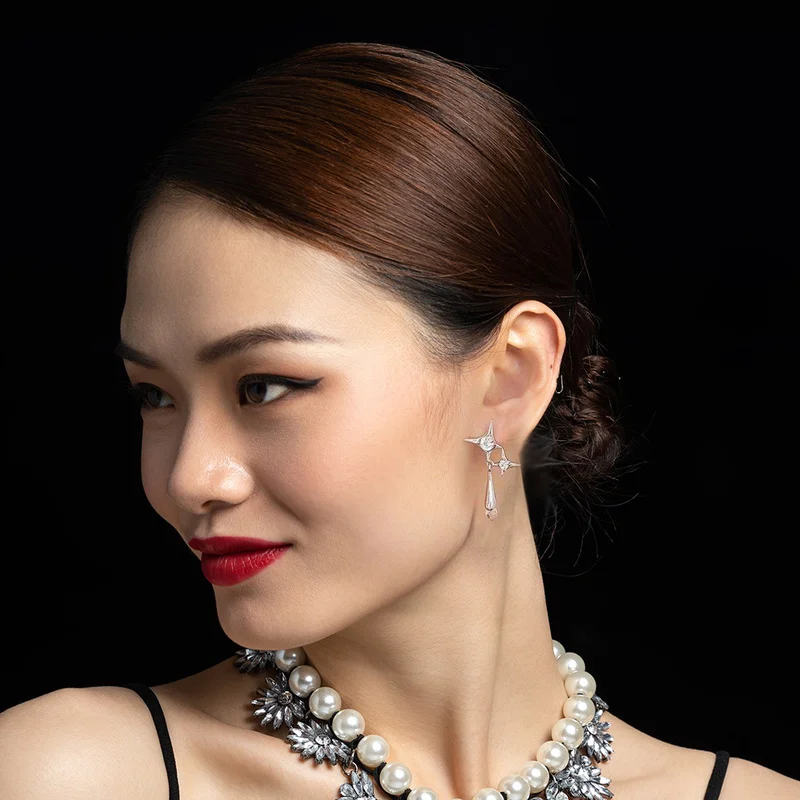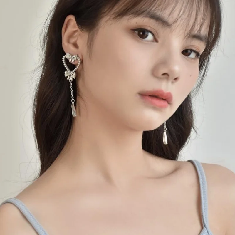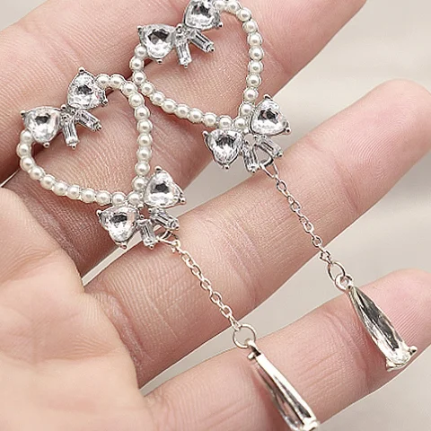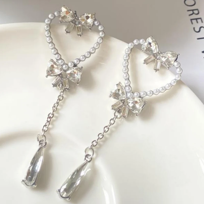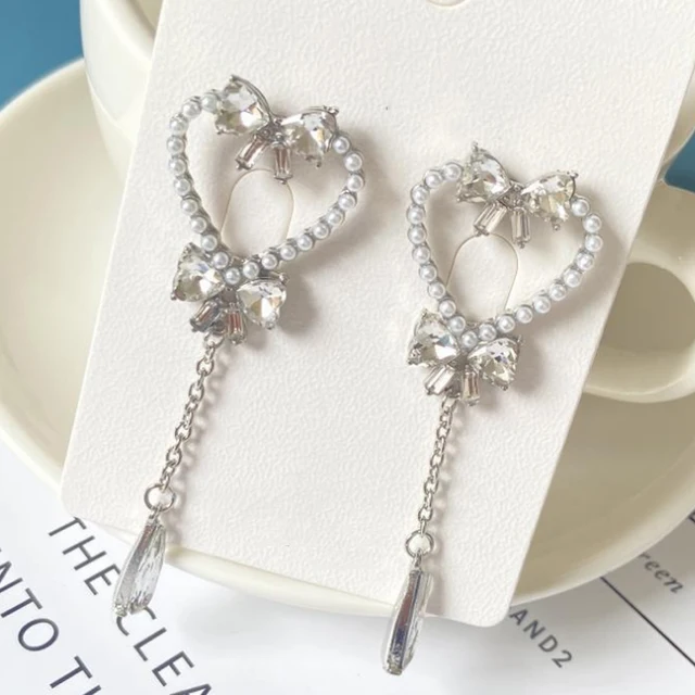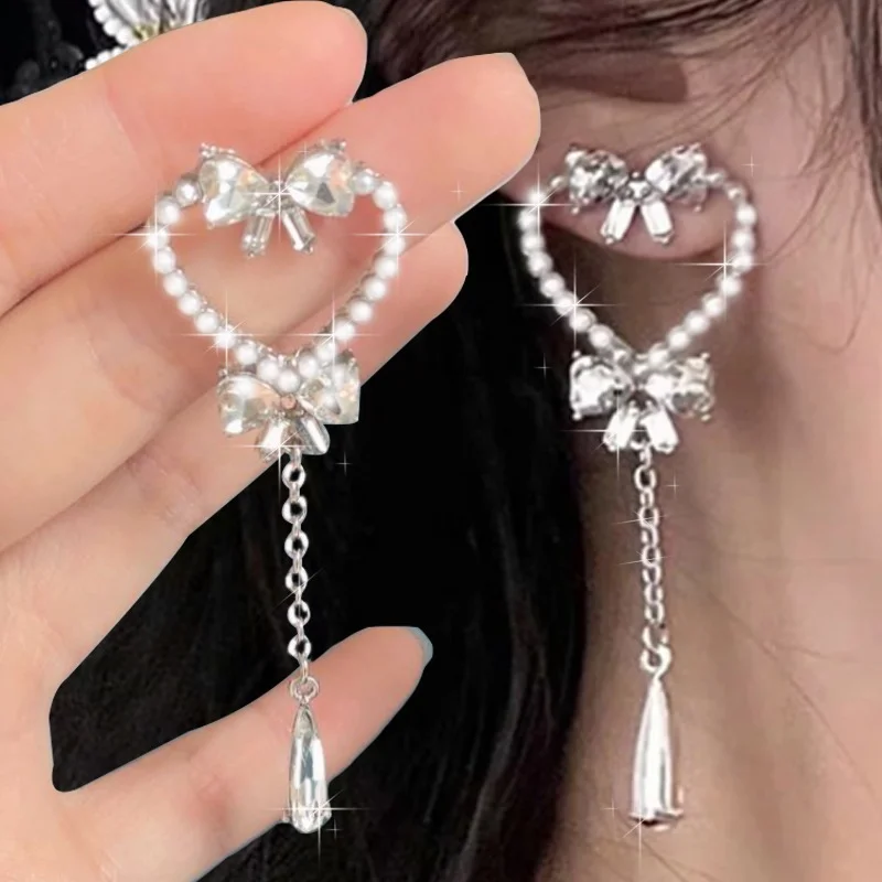 Romantic Hollow Heart Zircon Pendant Earring Women's Silver Bowknots Earrings Banquet Stud Earrings Fashion Jewelry Gifts