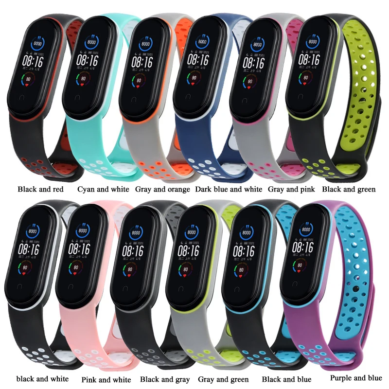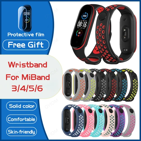 For Xiaomi Mi Band 3 4 5 6 Two-Color Watch Band Wristband Silicone Miband Smart Silicone Bracelet Mi3 M4 M5 Mi6 Glass Film